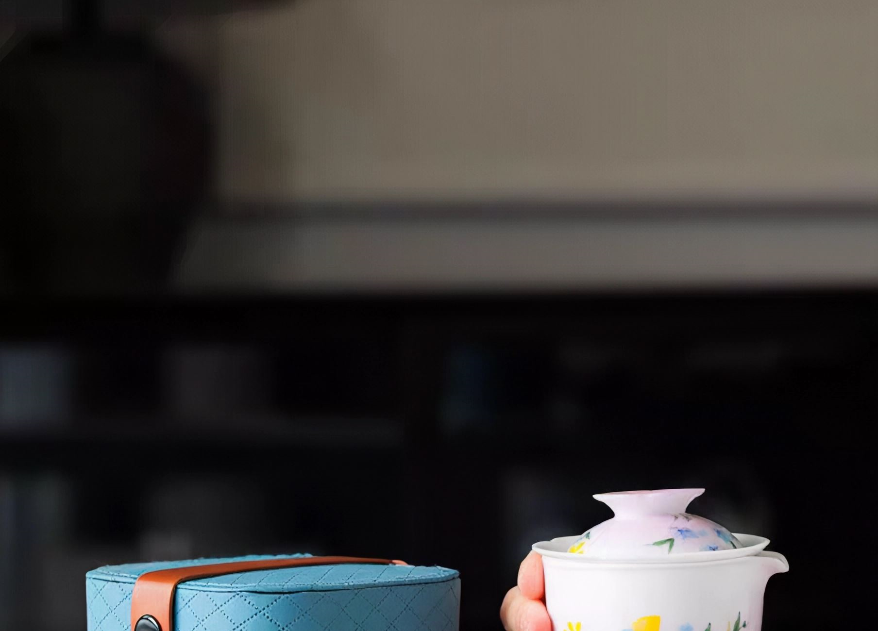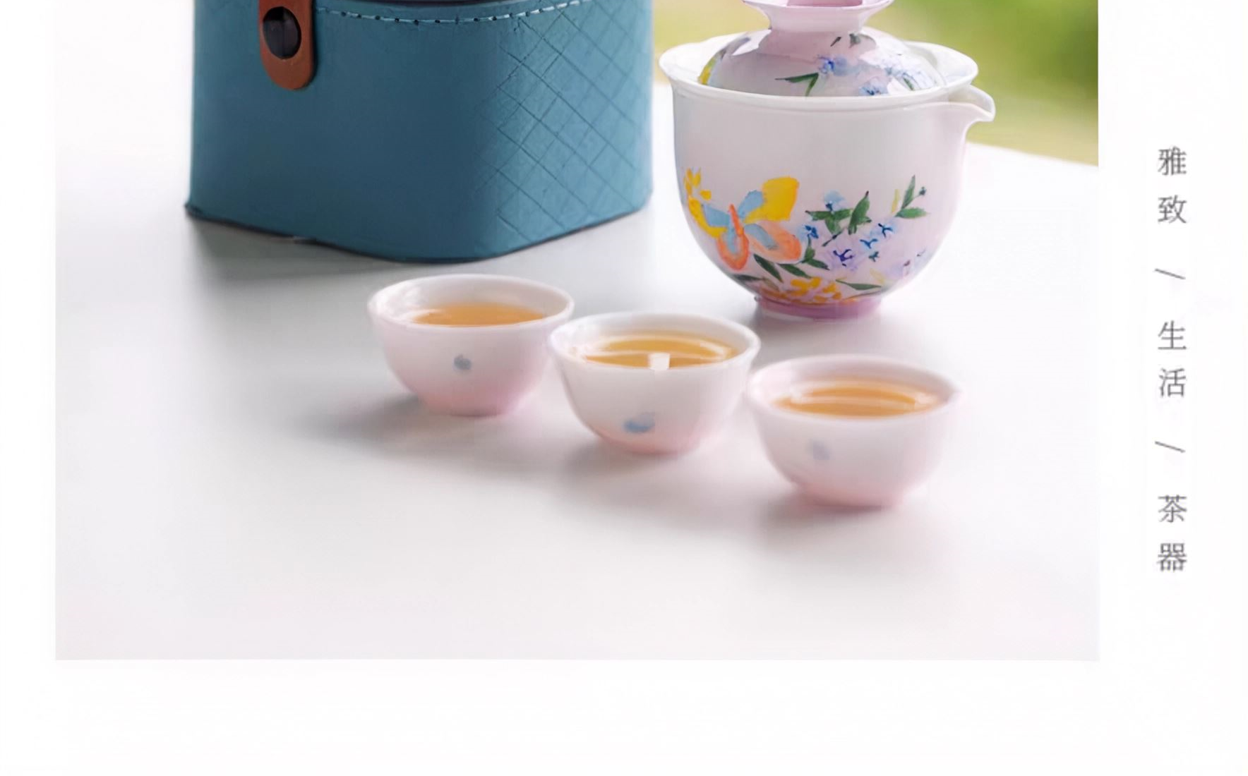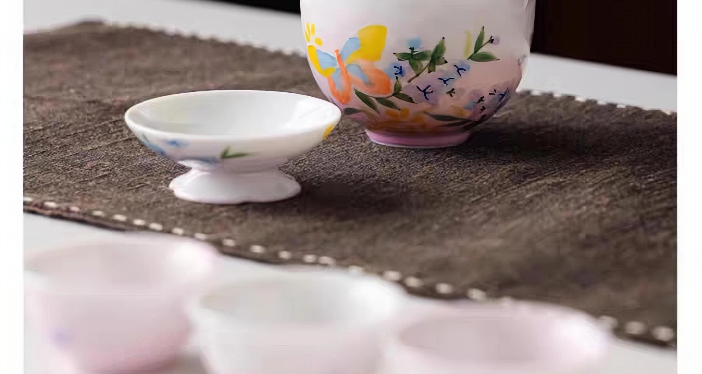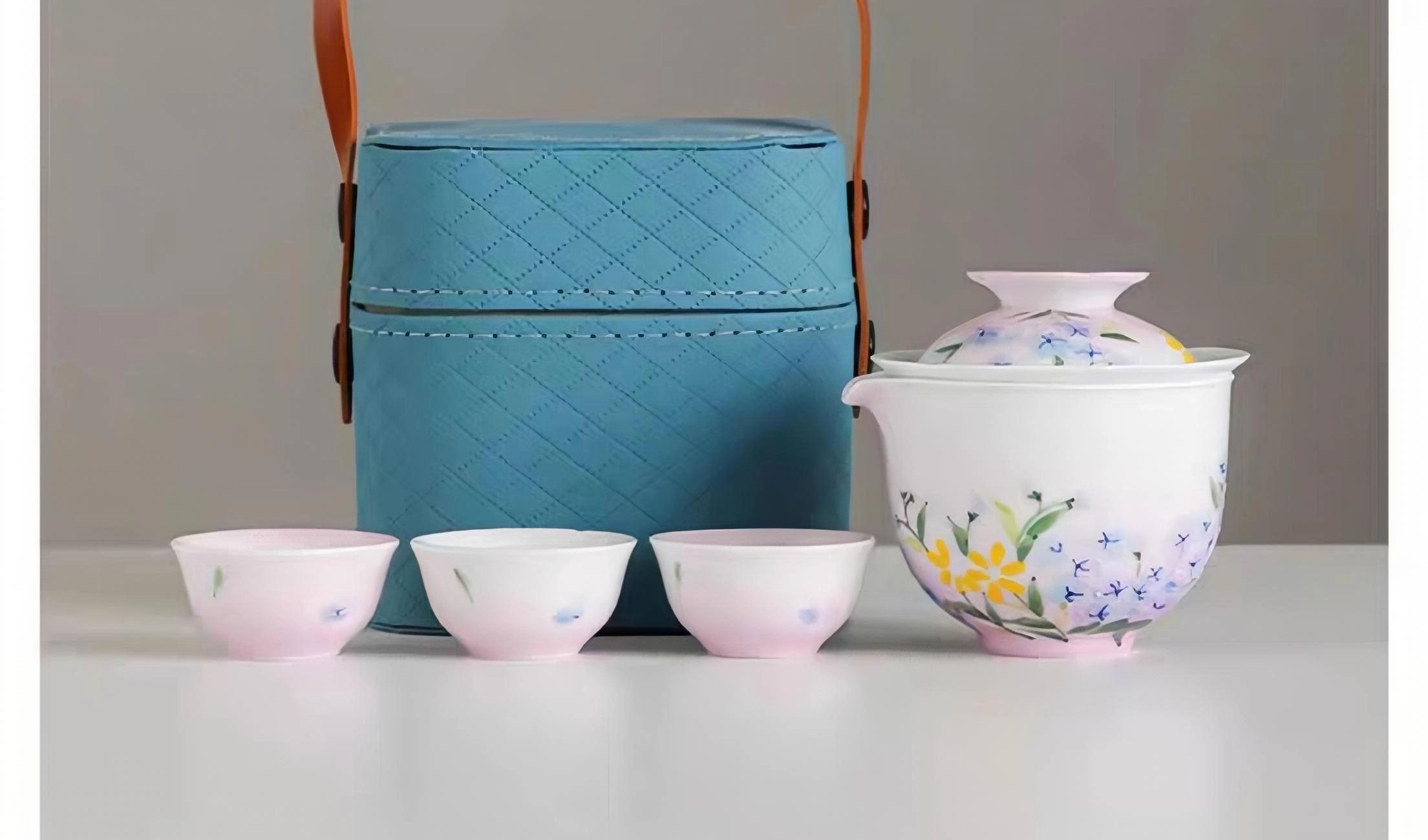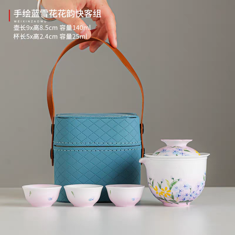 尾桥下窑手绘釉下彩浮雕花卉旅行便携茶具套装商务会议开业礼品