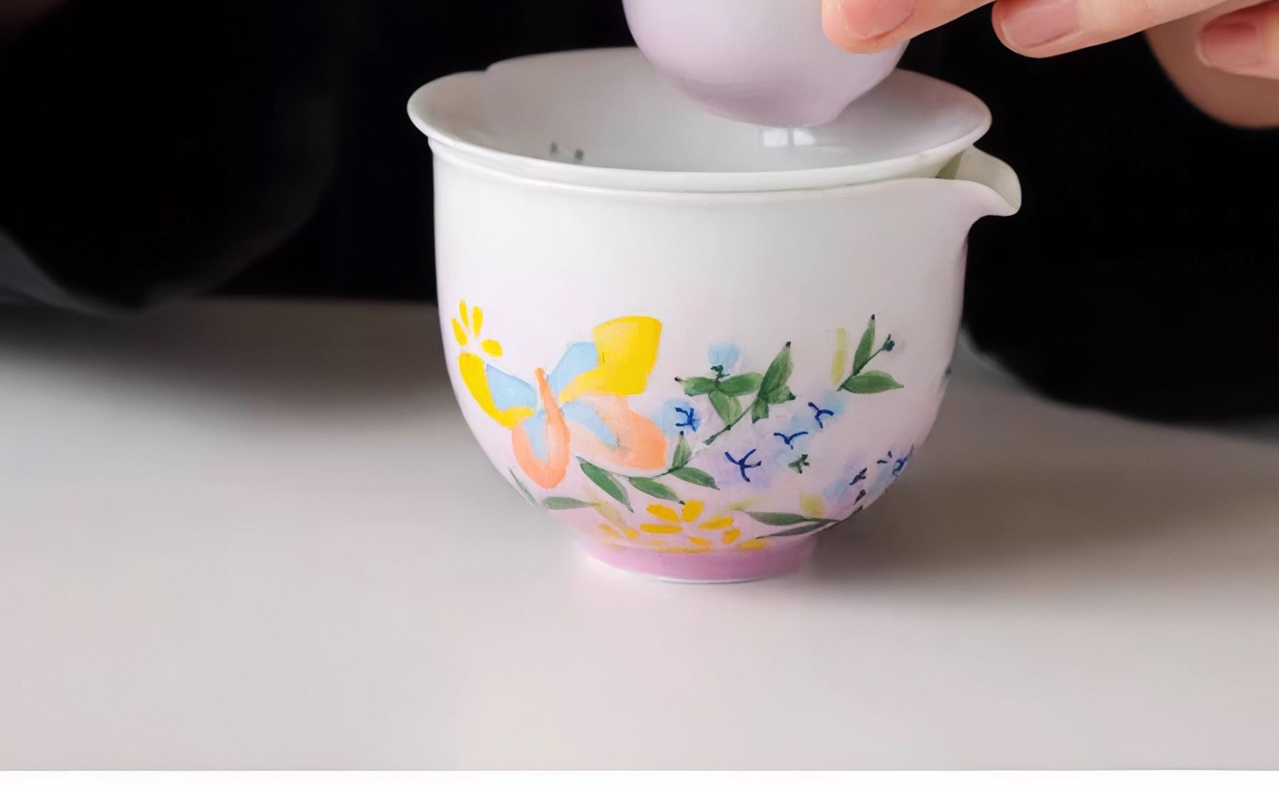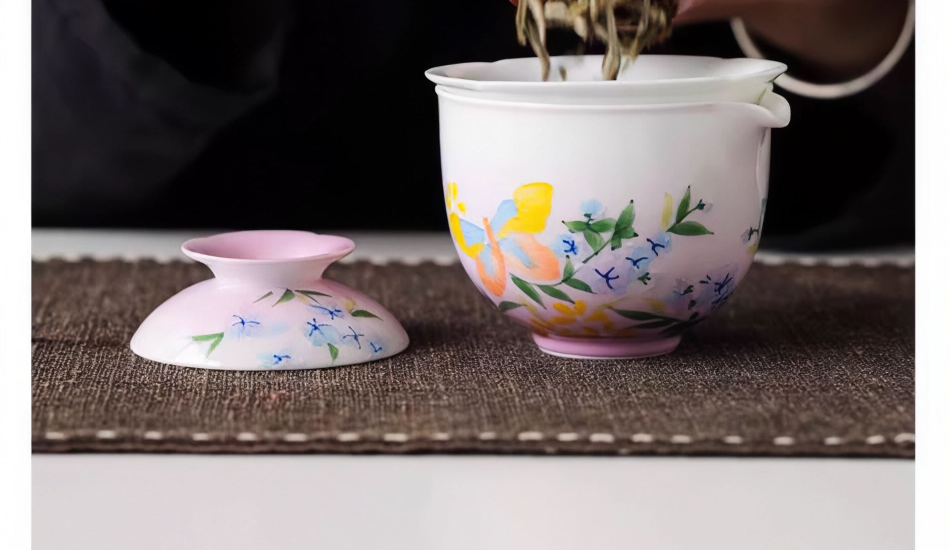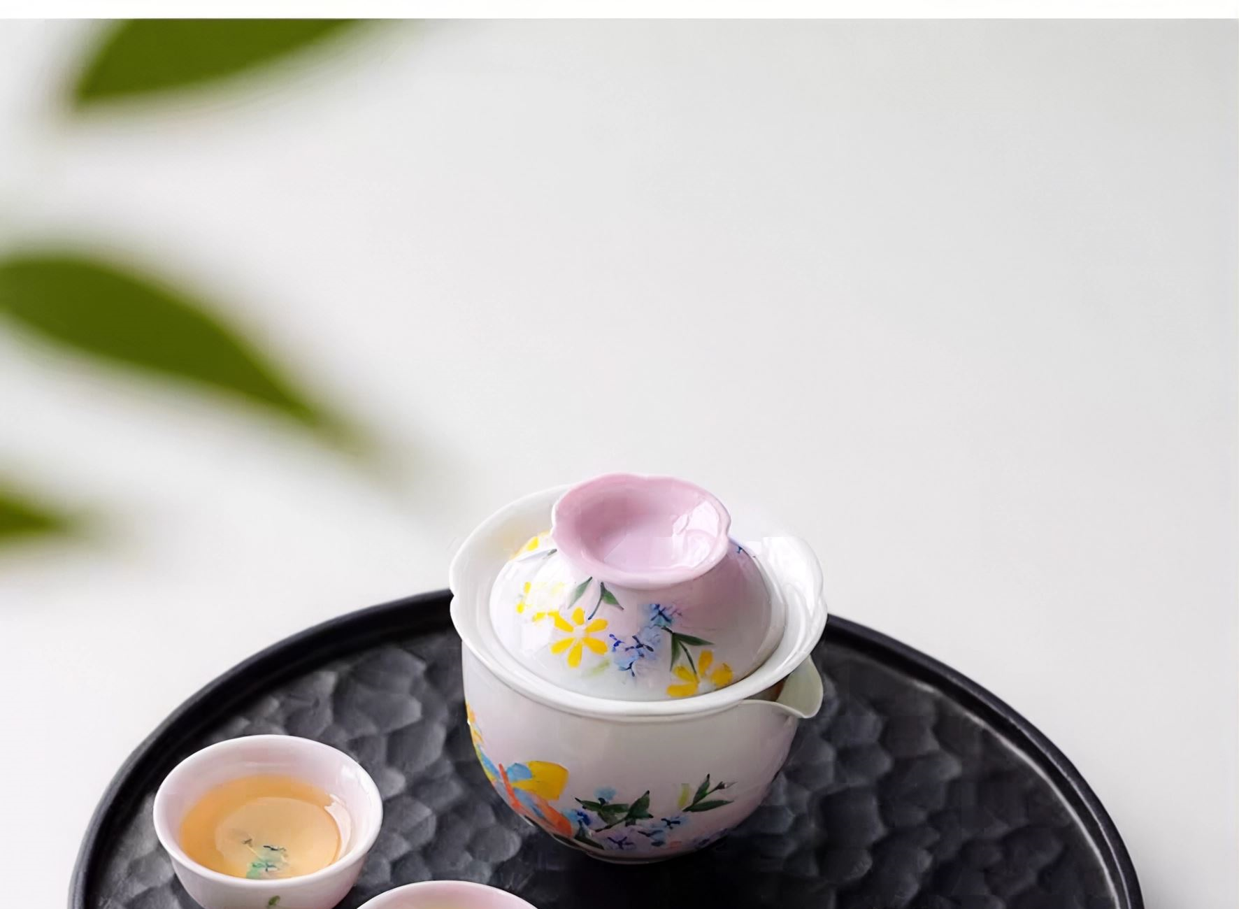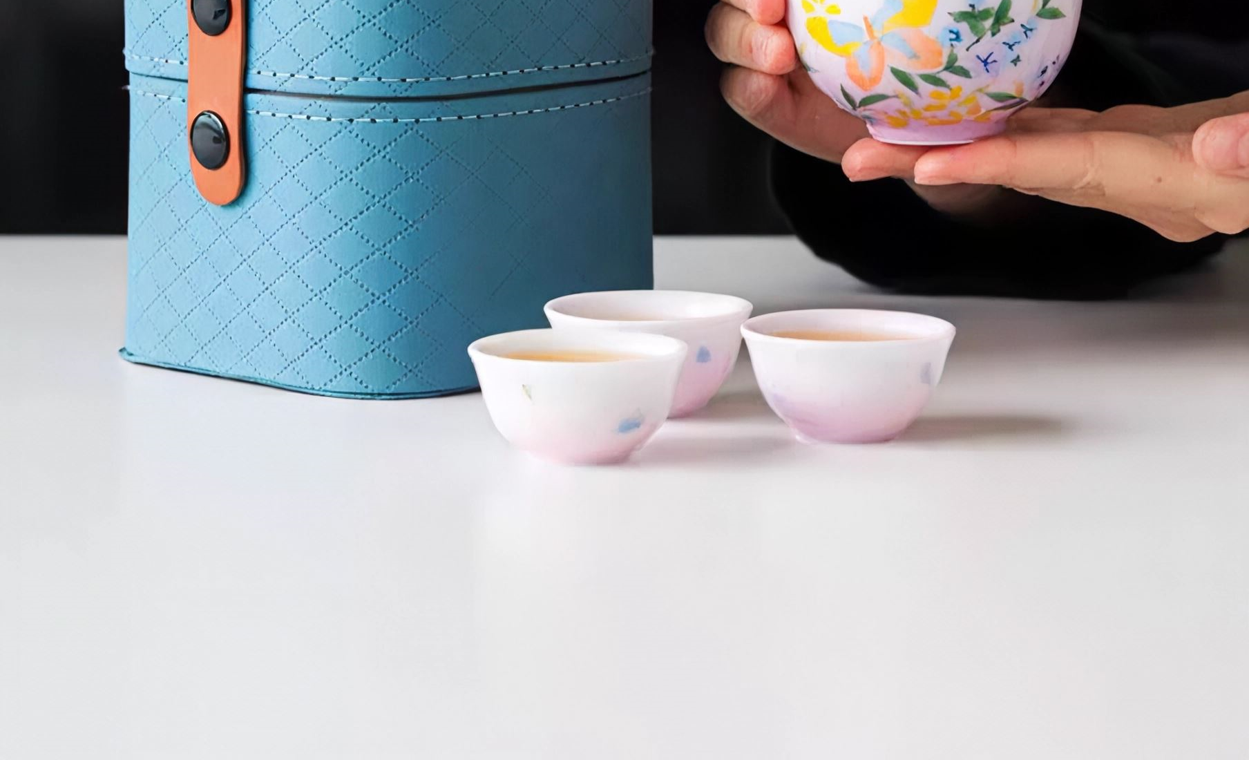 尾桥下窑手绘釉下彩浮雕花卉旅行便携茶具套装商务会议开业礼品