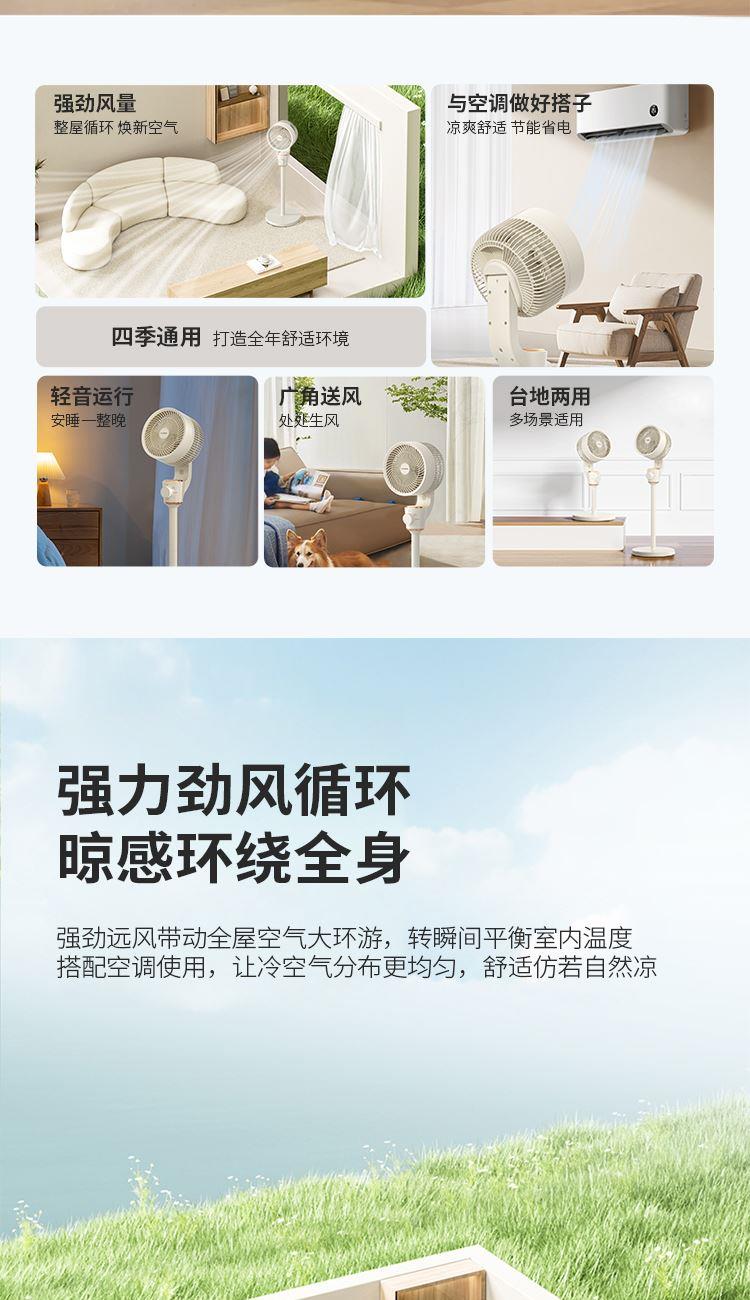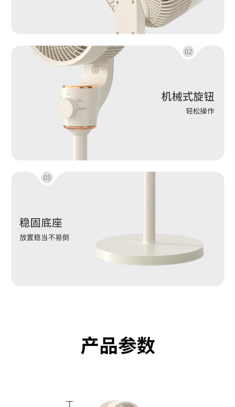 产品尺寸:330*330*1000mm 外箱尺寸:357*237*405mm 单台净重:2.33kg 单台毛重:2.9kg 操作模式:旋钮 69码:6975975071567 额定电压:220V~ 额定频率:50Hz 额定功率:30W_x005f 材质:PP+ABS 包装材料:邮购盒> 一机拆两机,台地、台式随意切换 > 三档风速设计, 满足不同清凉需求 > 120°左右自动摇头,上下90°手动调节 > 聚风筒导流强风,加速带动室内空气流动 > 三档精细风量,照顾每个家人体感舒适区