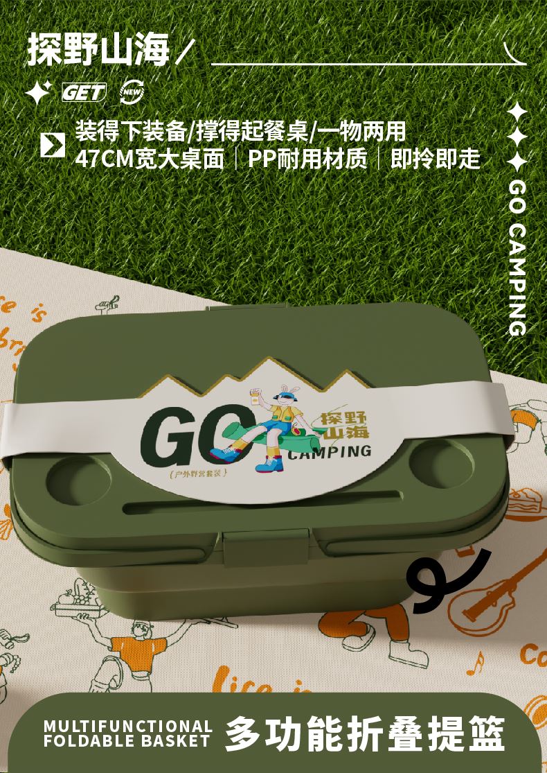 礼盒配置:多功能折叠提篮(带桌板)*1 露营灯* 1、便当盒* 1、野餐垫*1 机甲蓝牙音响*1、户外防晒帽* 1 荃盛粽子*2、南湖牌高邮咸鸭蛋*2