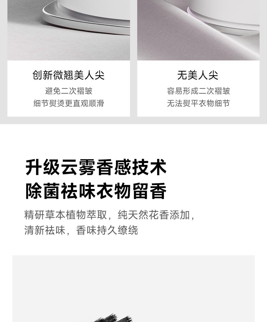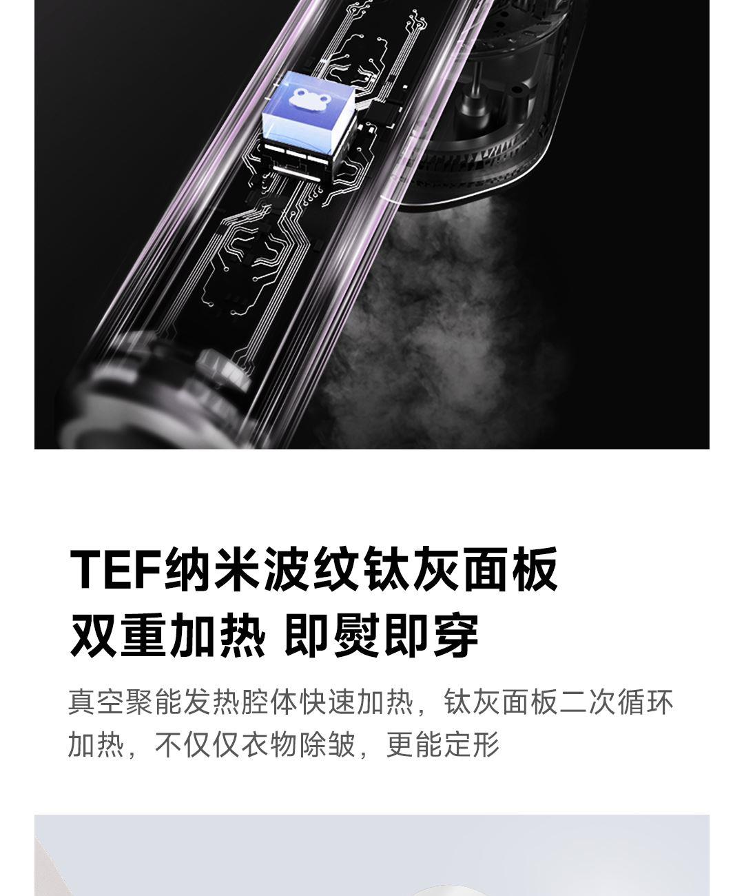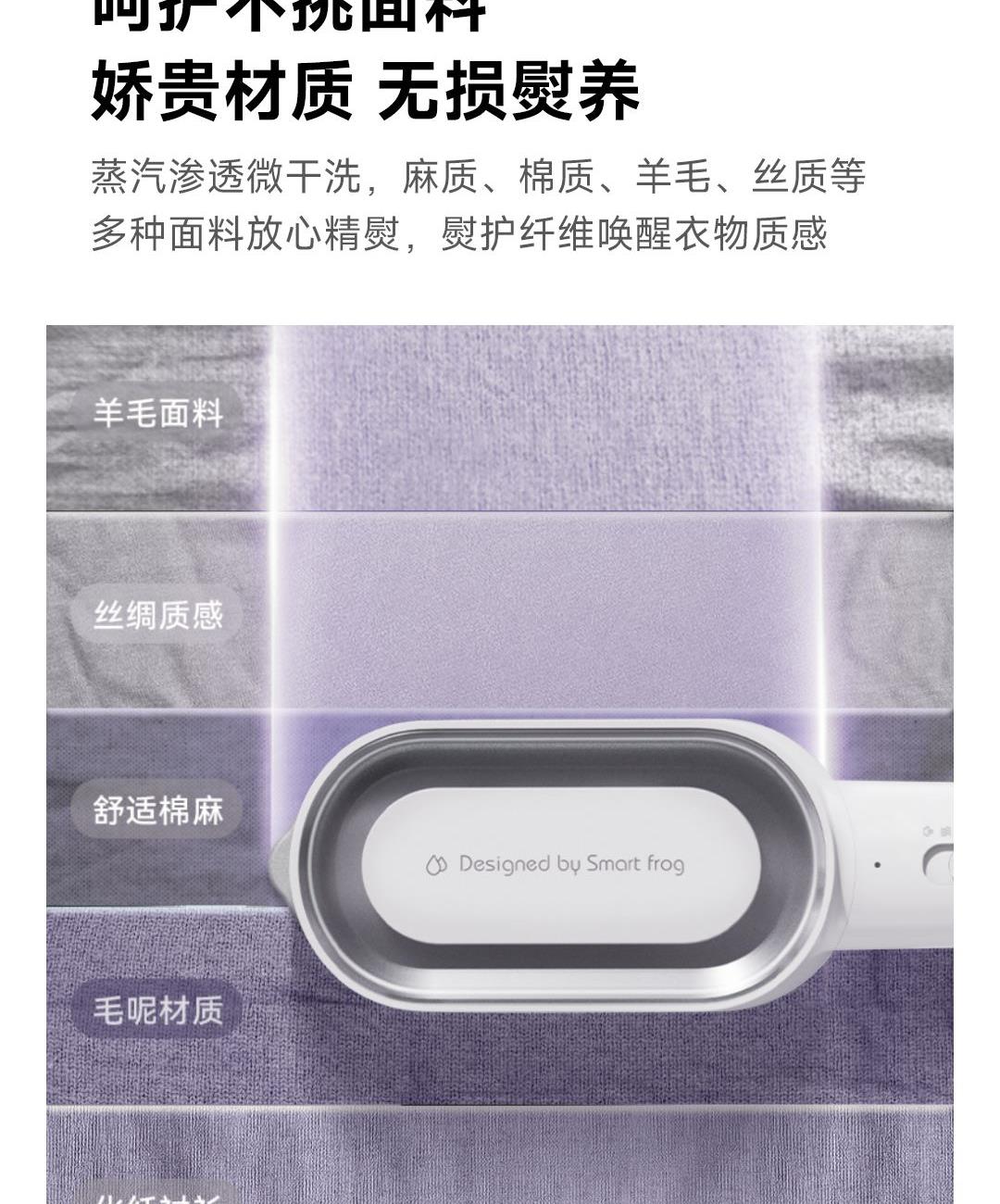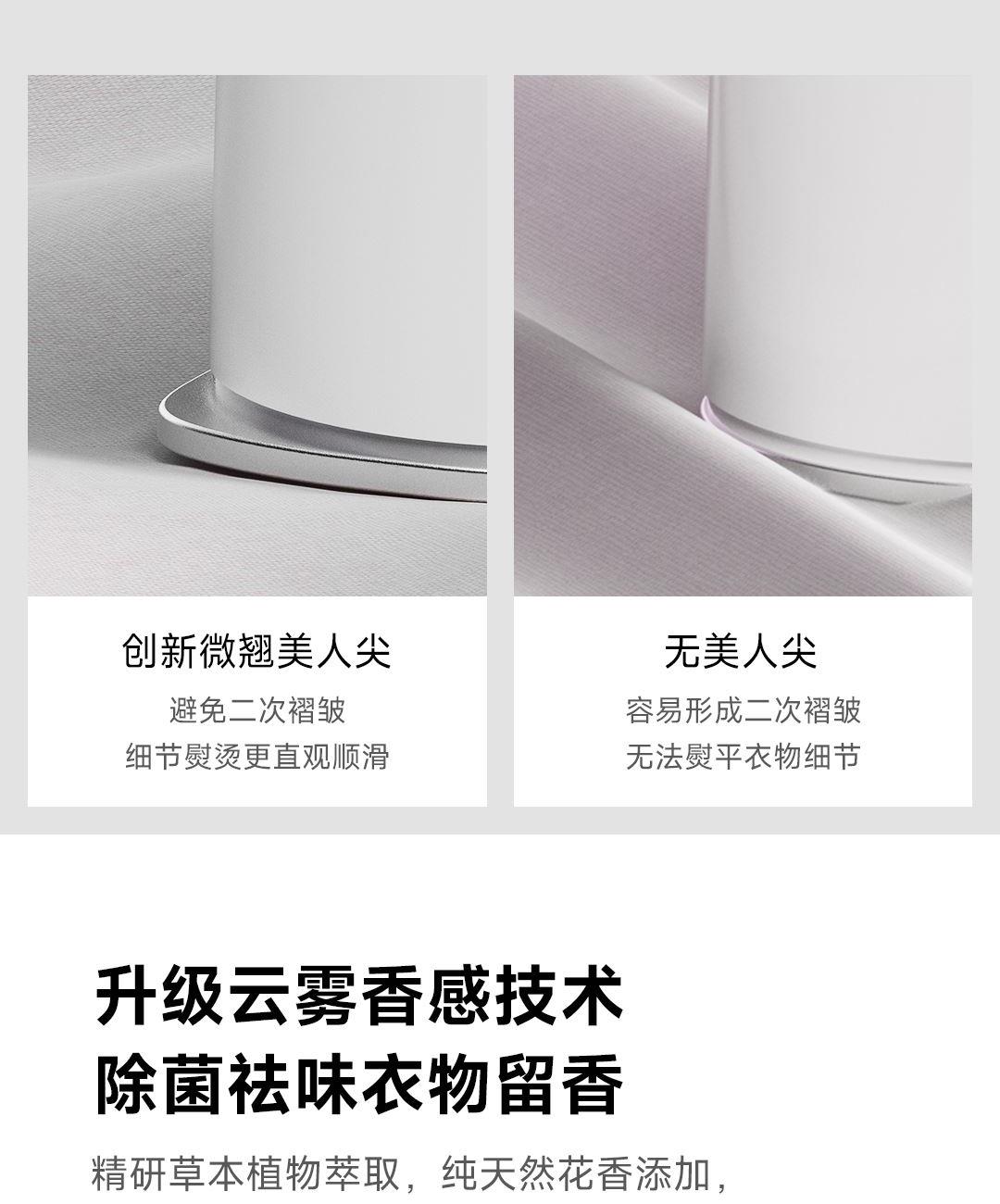 1.90°可旋转面板,64/129mm熨烫面自由切换 2.强脉冲式增压蒸汽系统,即熨即穿 3.平挂干湿多合一,不同场景随取随熨 4.高温蒸汽净菌除螨 5.控温精熨,不伤衣物,真丝也能熨 6.Alalloy加大面板,同样时间多熨一件 7.719g净重,零负担握感,久熨不累手 8.可视化大容量水箱,一次熨多件衣服 9.轻盈小体积,够轻才顺手