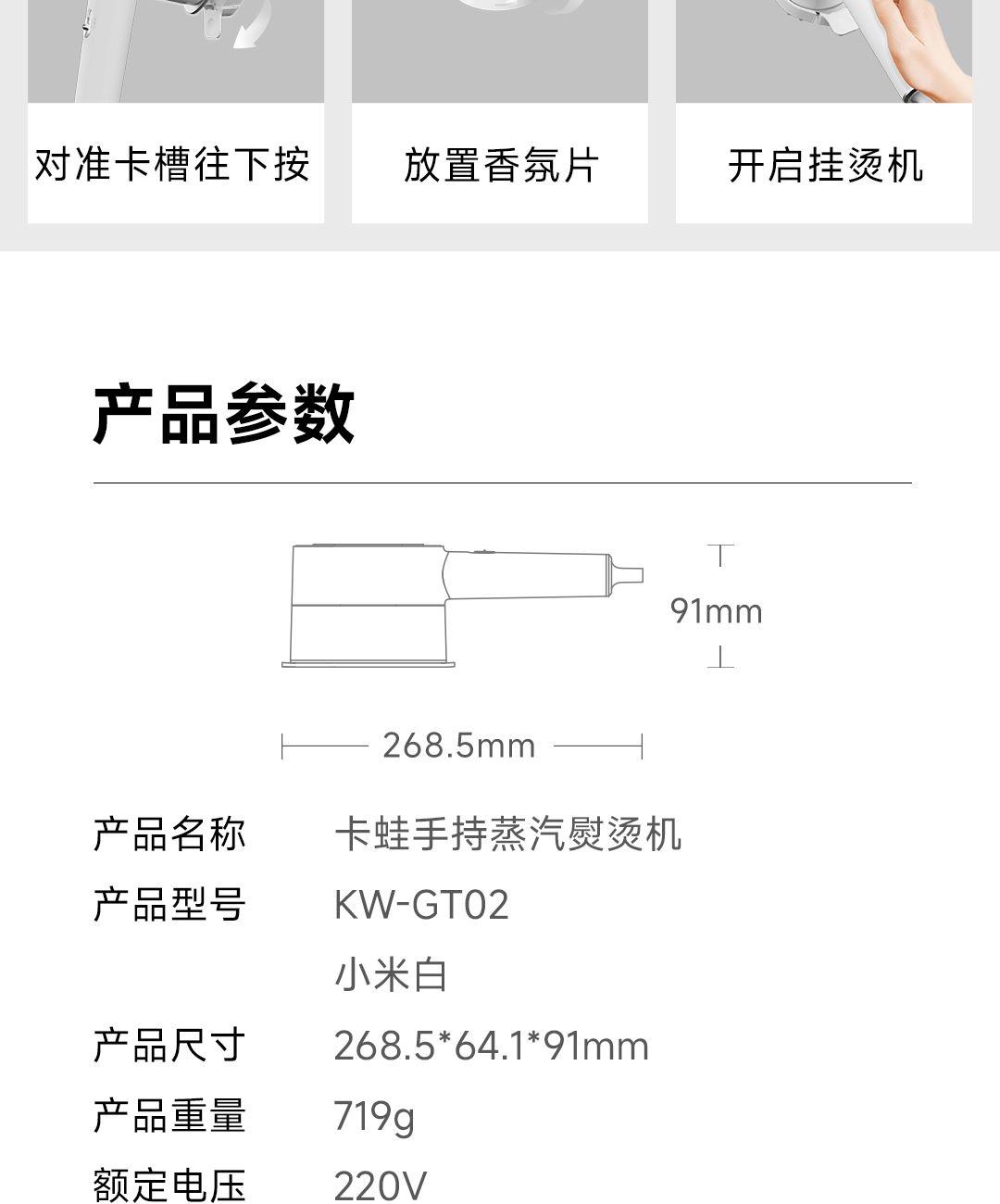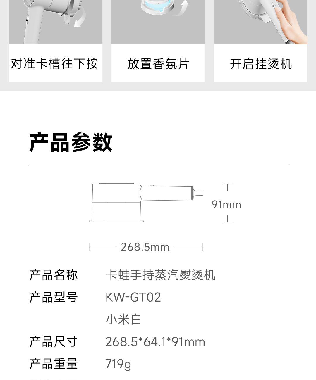 卡蛙便携式挂烫机(带毛刷及香薰功能)KW-GT02白色
