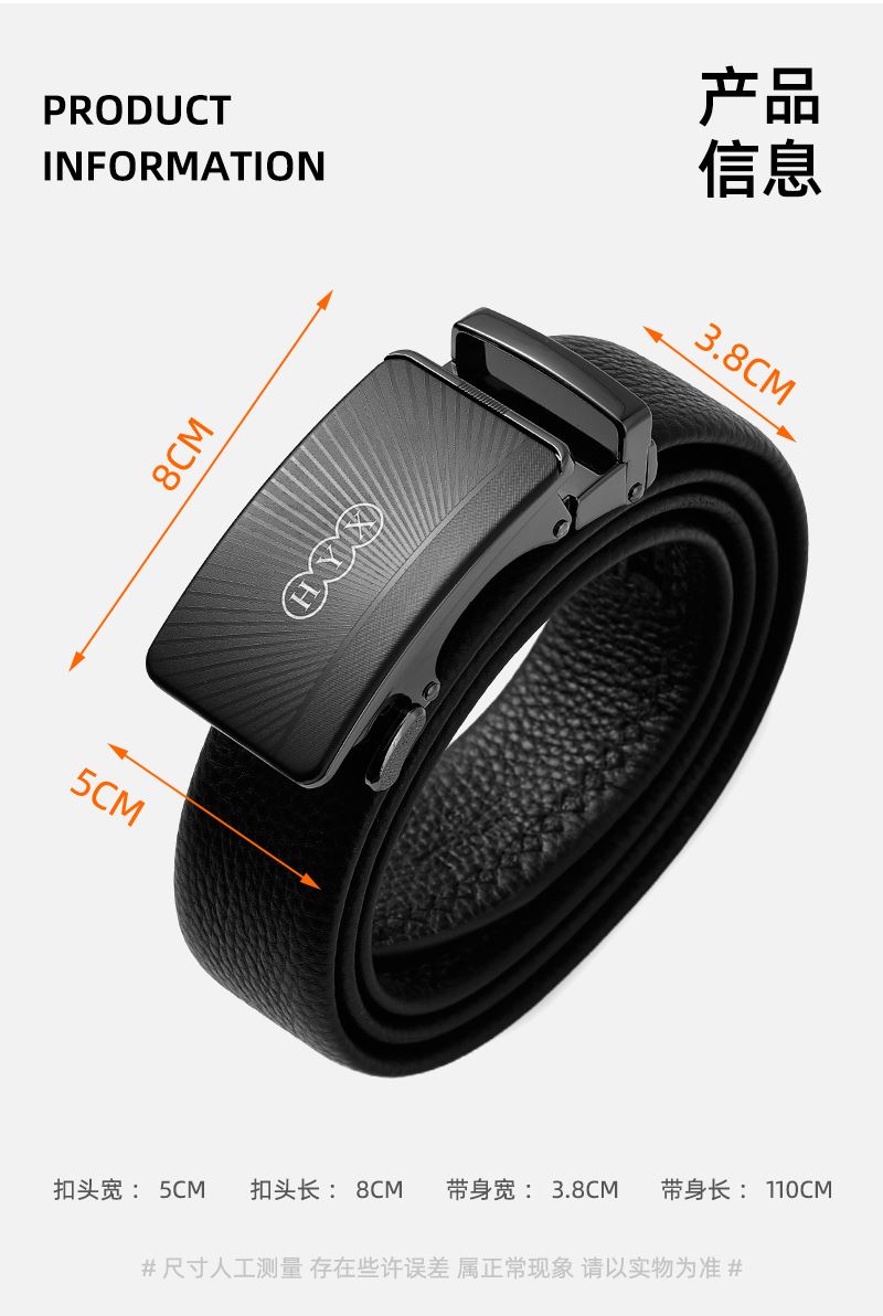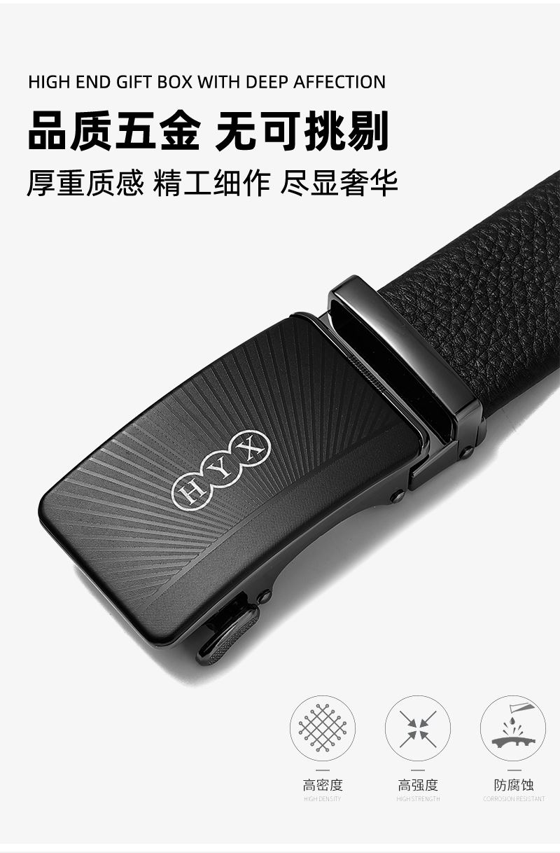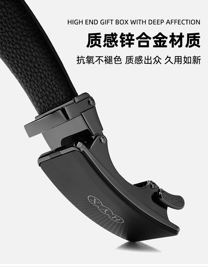 产品型号:HYXP010 产品颜色:黑色 产品材质:锌合金、牛头层皮革 产品尺寸:8*5cm 产品重量:223.8克 外包装尺寸:45*48*65mm