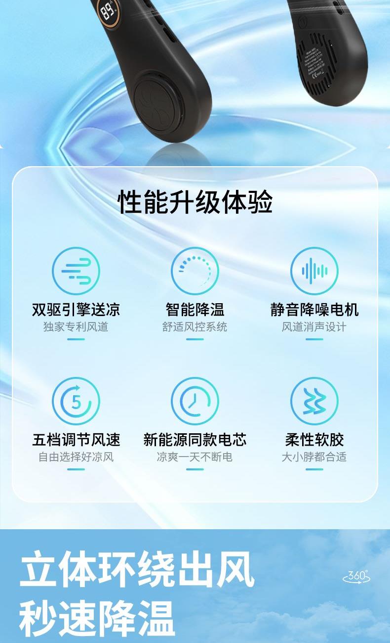 思薇科林无叶挂脖风扇小型便携戴式随身挂脖子降温神器