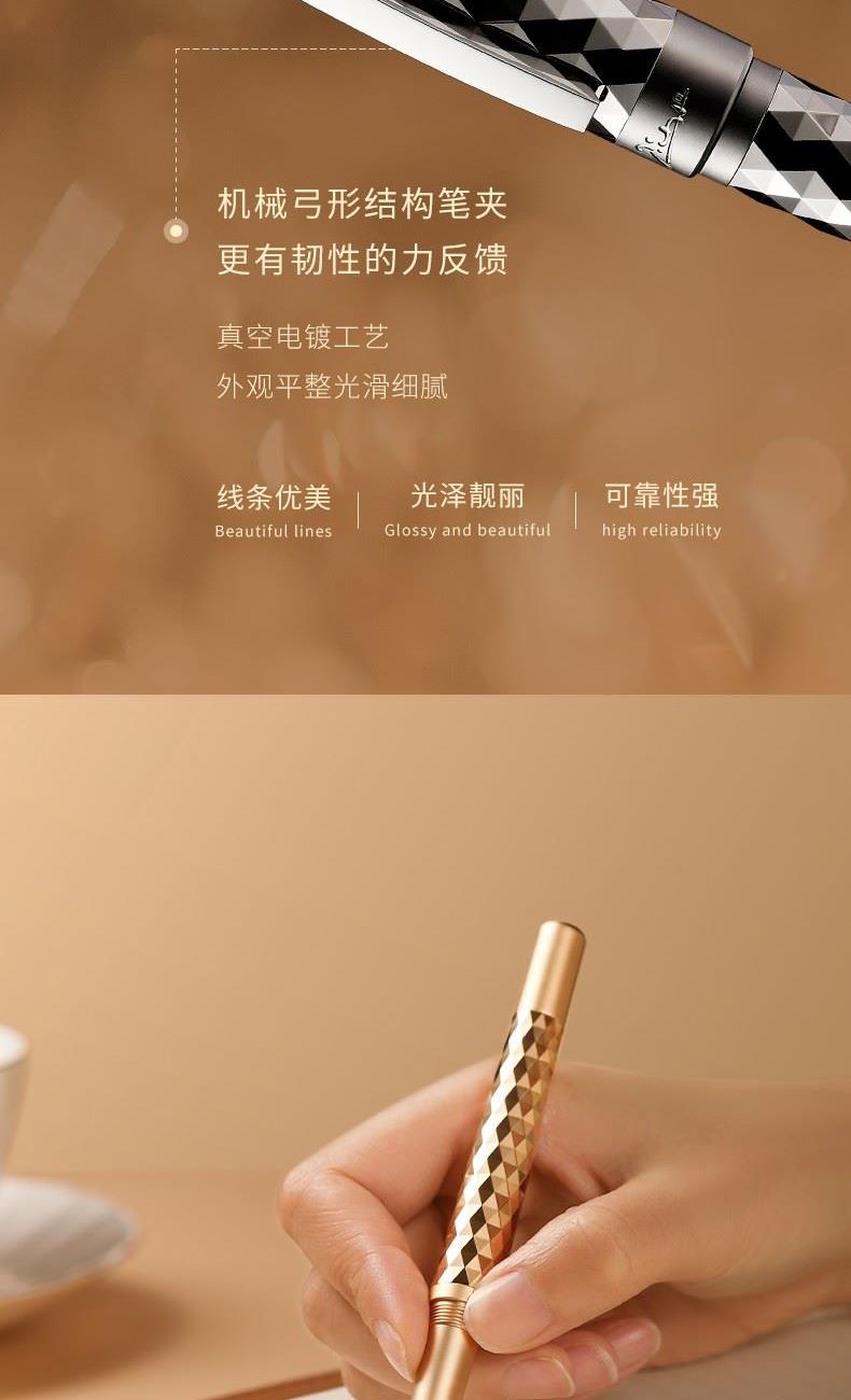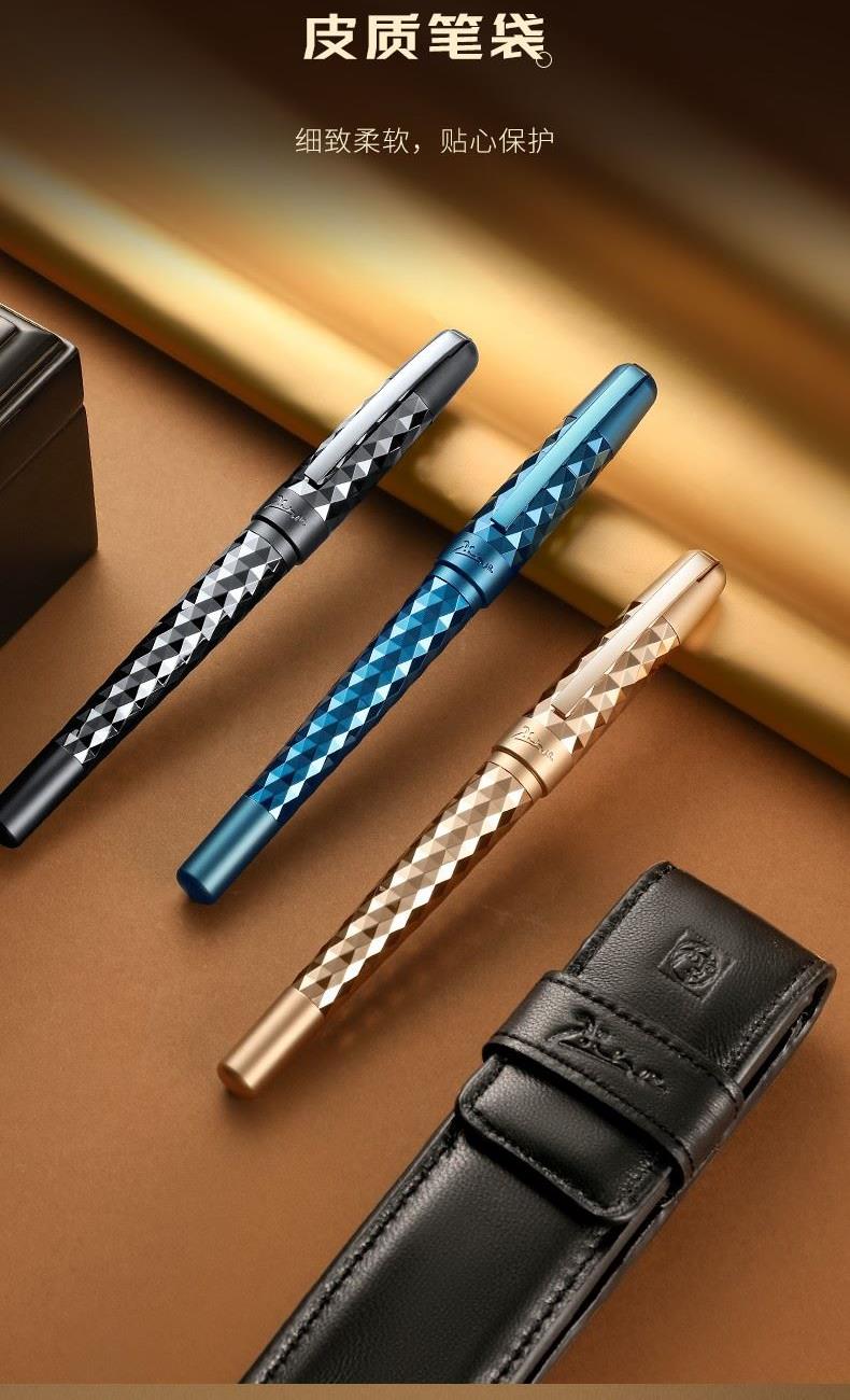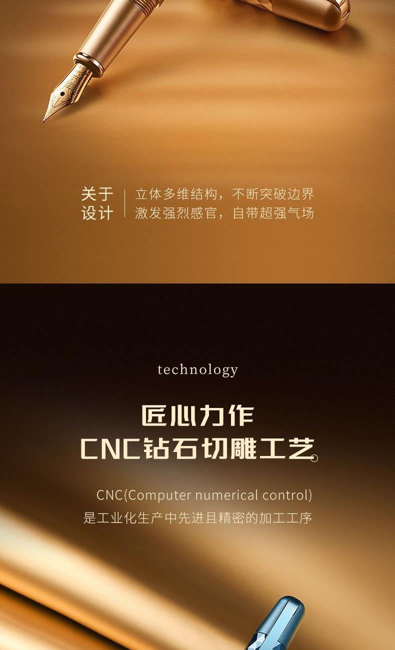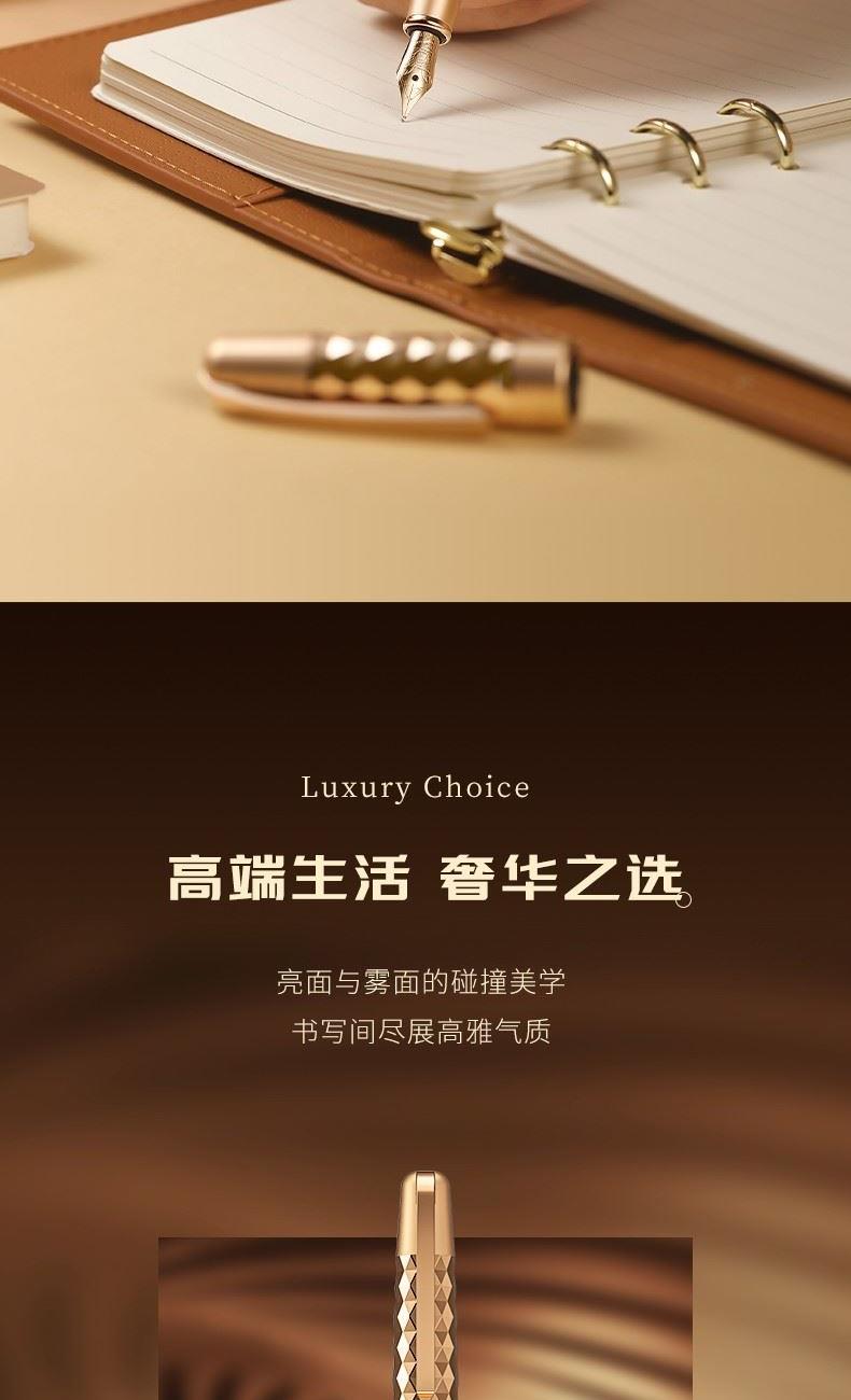 【礼盒包装】 钢笔、笔袋、墨水38ml、包装盒、外彩盒、手提袋、合格证、说明书 立体多维结构,不断突破边界 激发强烈感官,自带超强气场