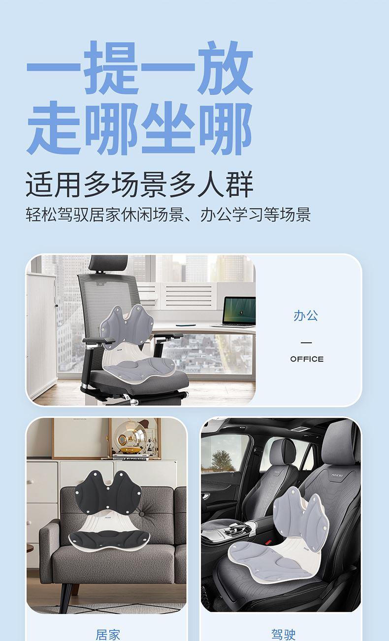 ①科学分区,贴合身体曲线 ②多挡调节,满足多样化需求 ③动态追背,随肌而动