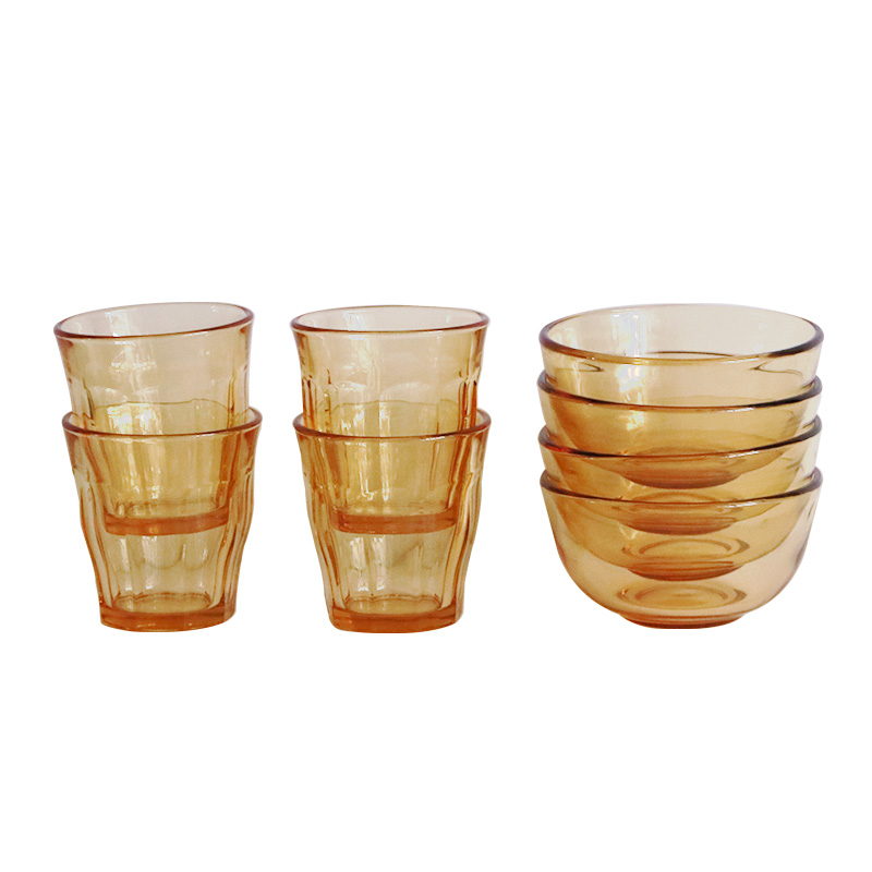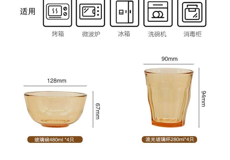 容量:玻璃碗480ml *4+流光玻璃杯280ML*4 材质:高硼硅耐热玻璃 包装方式:彩盒包装 优势:高品质,低价位,样品支持,前端服务体系完善,售后无忧
