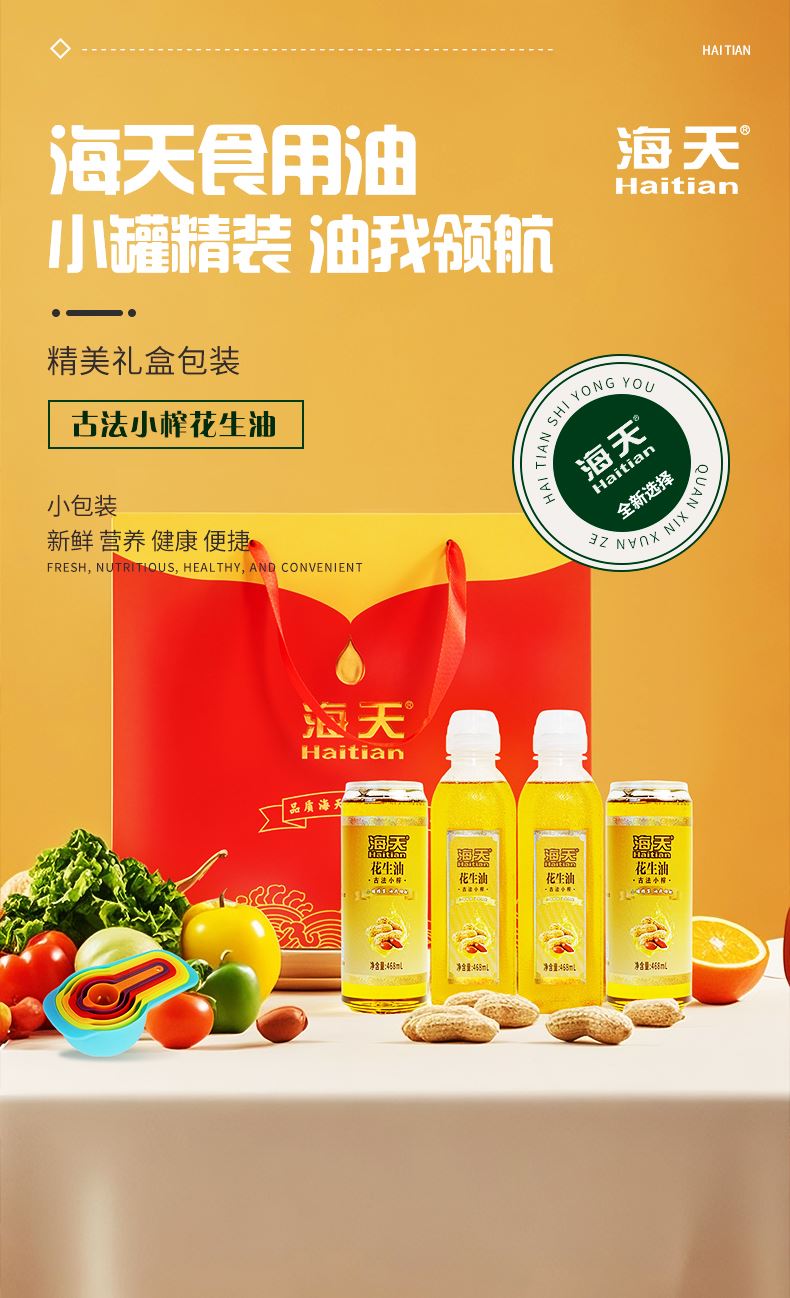海天食用油非转基因花生油4件套468毫升*4HT-H403