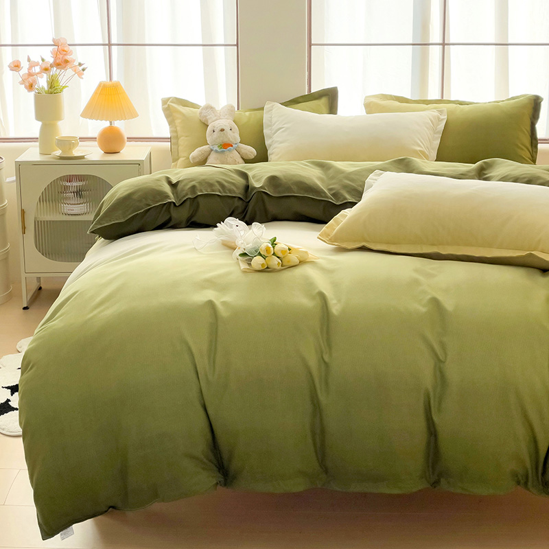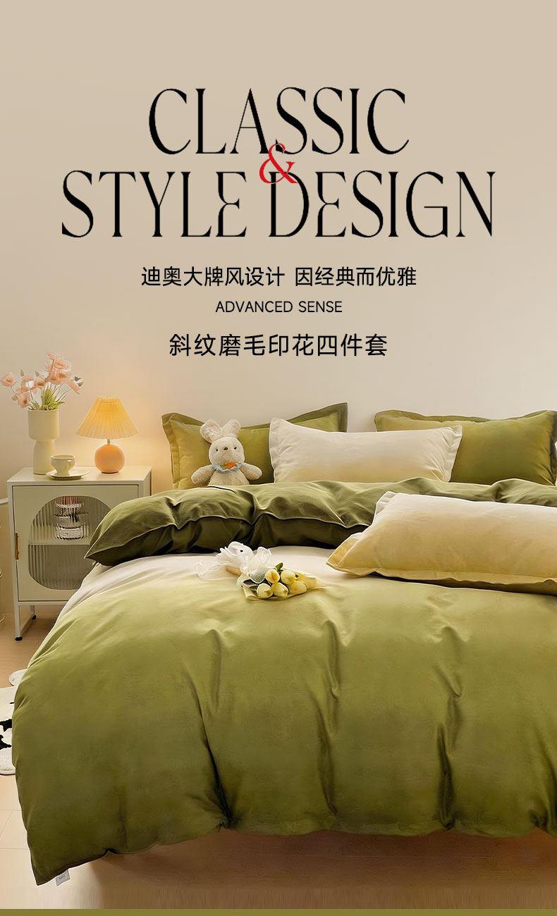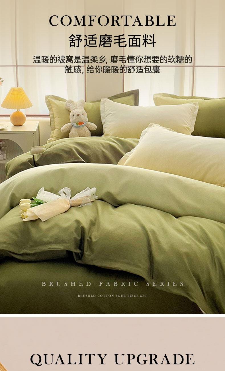 <赫兰希>ins风斜纹磨毛四件套-青野