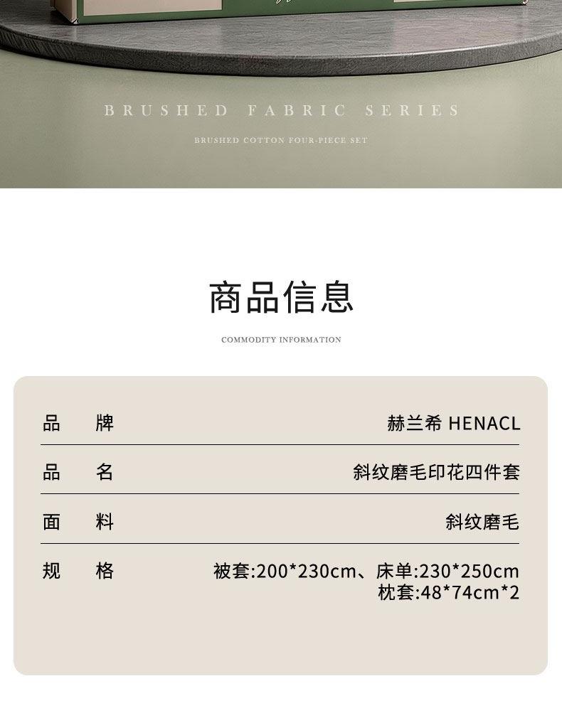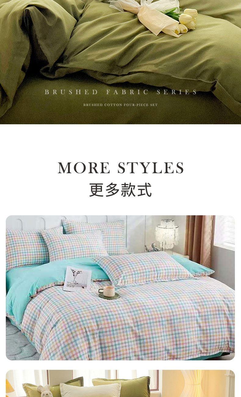 <赫兰希>ins风斜纹磨毛四件套-青野 <赫兰希>ins风斜纹磨毛四件套-青野