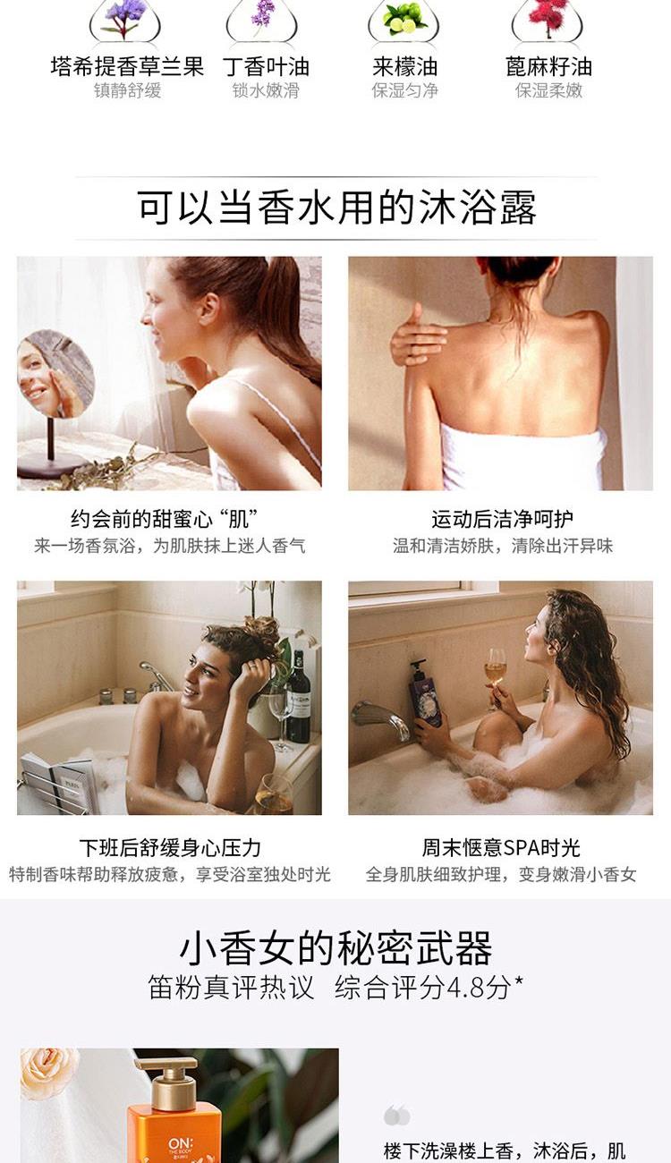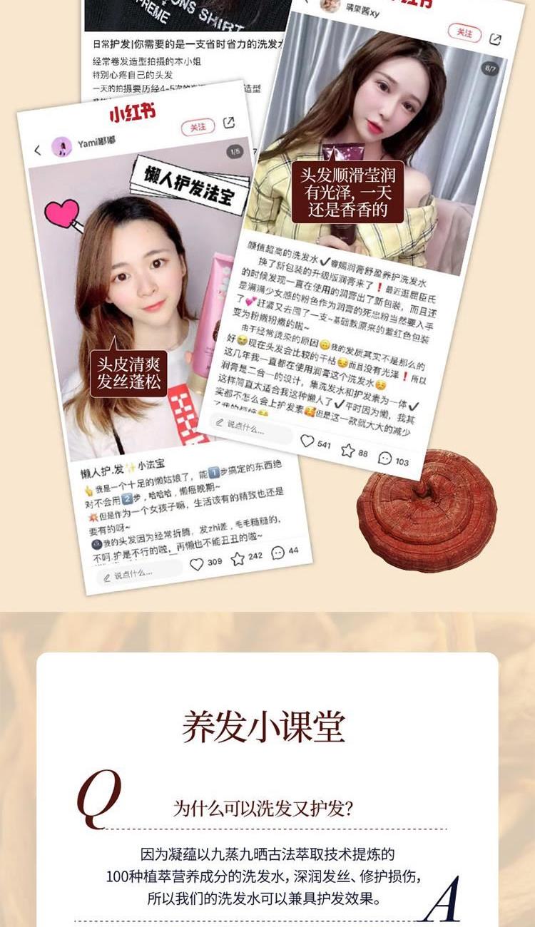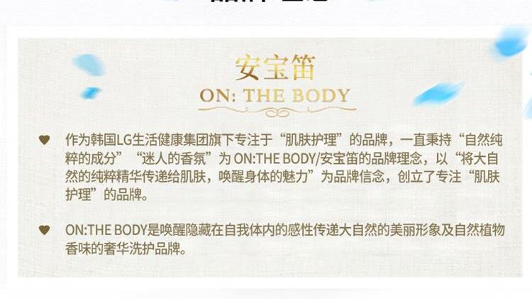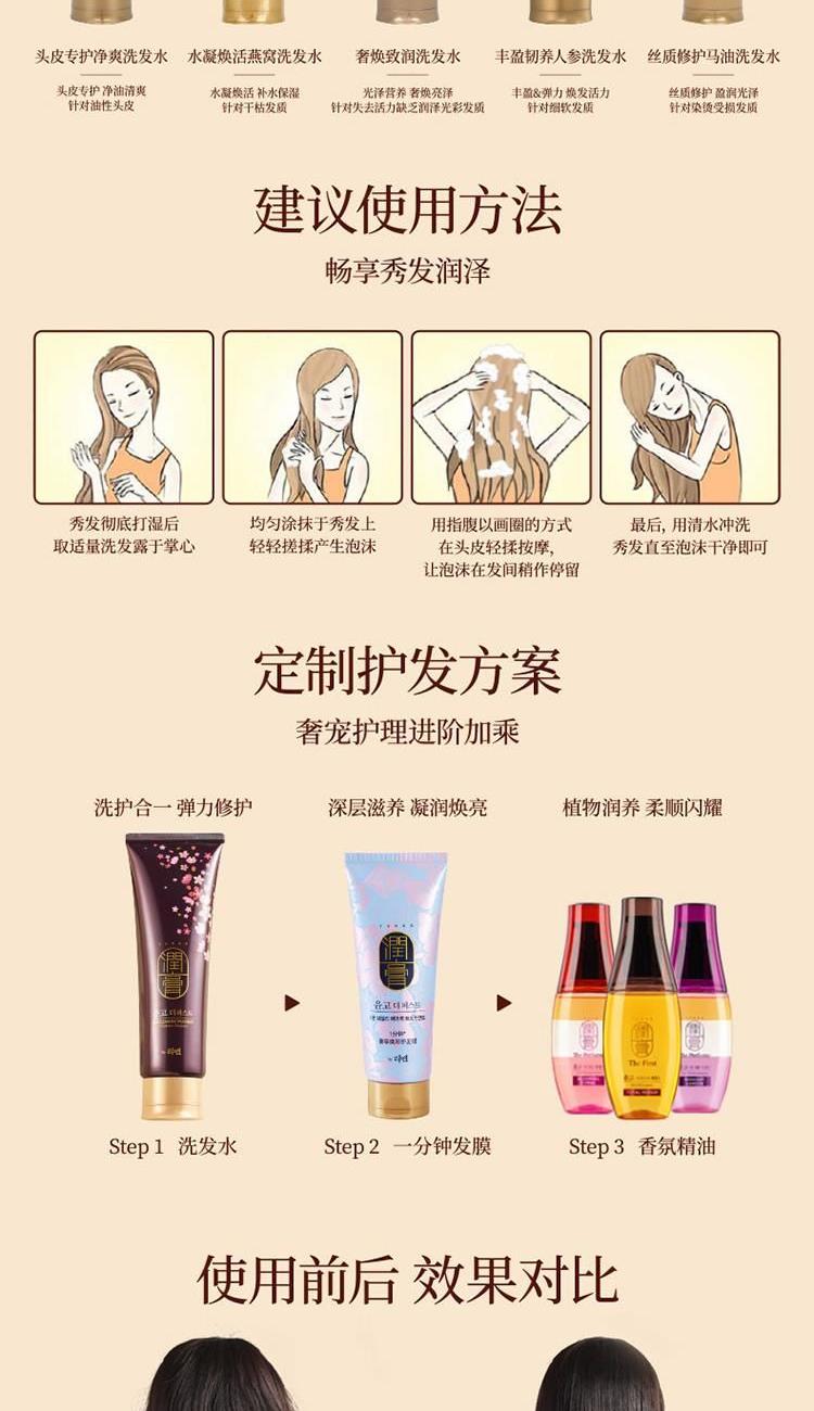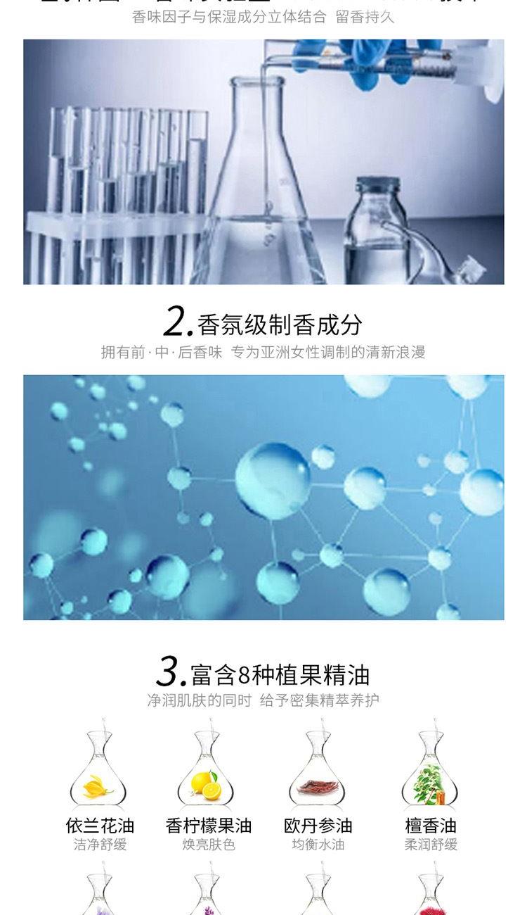香水级香氛(馥郁香气 丝丝索饶),清洁皮肤,滋润美肌,留香更长,植物精油成分,细致渗透力,肌肤易吸收,打造润泽美肌。 洗发水:蕴含百种植物精粹,100种天然原料成分,带来全效合一营养护理,令秀发富有弹性,散发透亮光彩。补水水分,带给秀发健康和弹性,赋予秀发真正的耀眼光泽。 使用发质:针对失去活力缺乏润泽发质