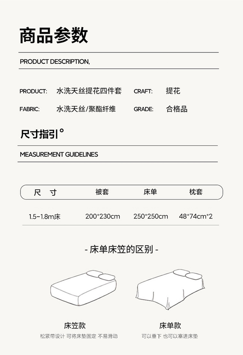 规格:被套200*230cm*1床单245*245cm*1枕套48x74cm*2