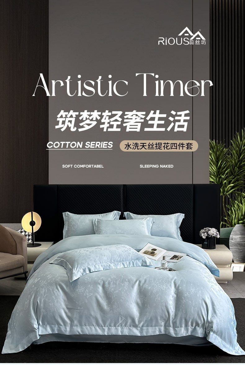蕊丝坊家纺新款高奢提花水洗天丝四件套