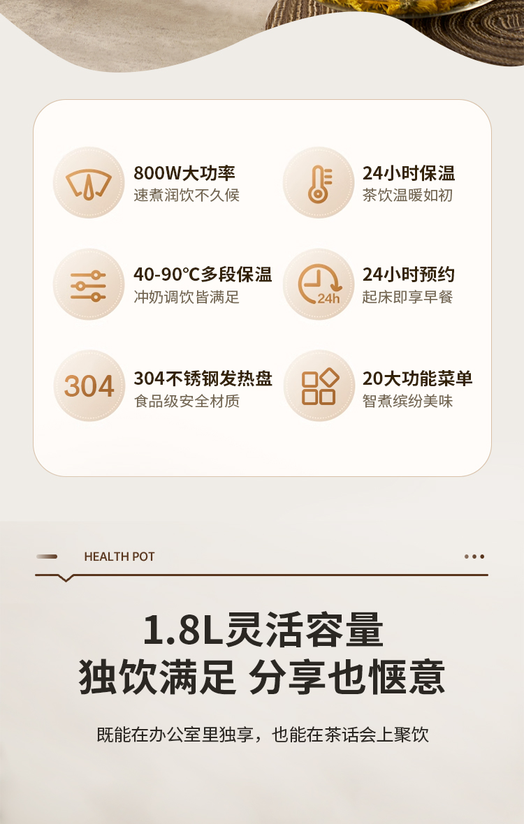 > 1.8L 大容量,800W大功率,24小时预约,随心所用