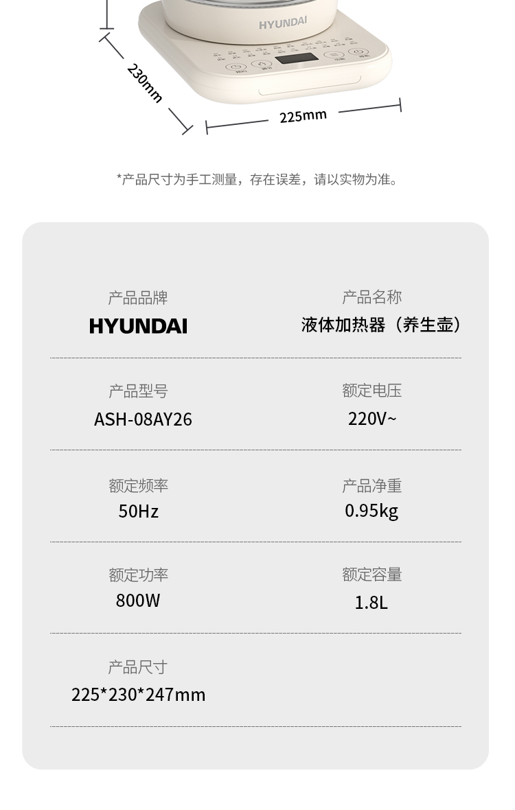 HYUNDAI液体加热器(养生壶)ASH-08AY26