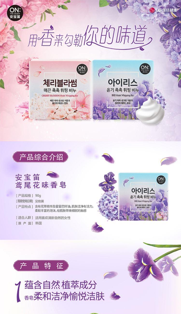 韩国进口,蕴含自然植萃成分,香皂柔和洁净愉悦洁肤