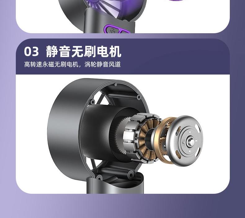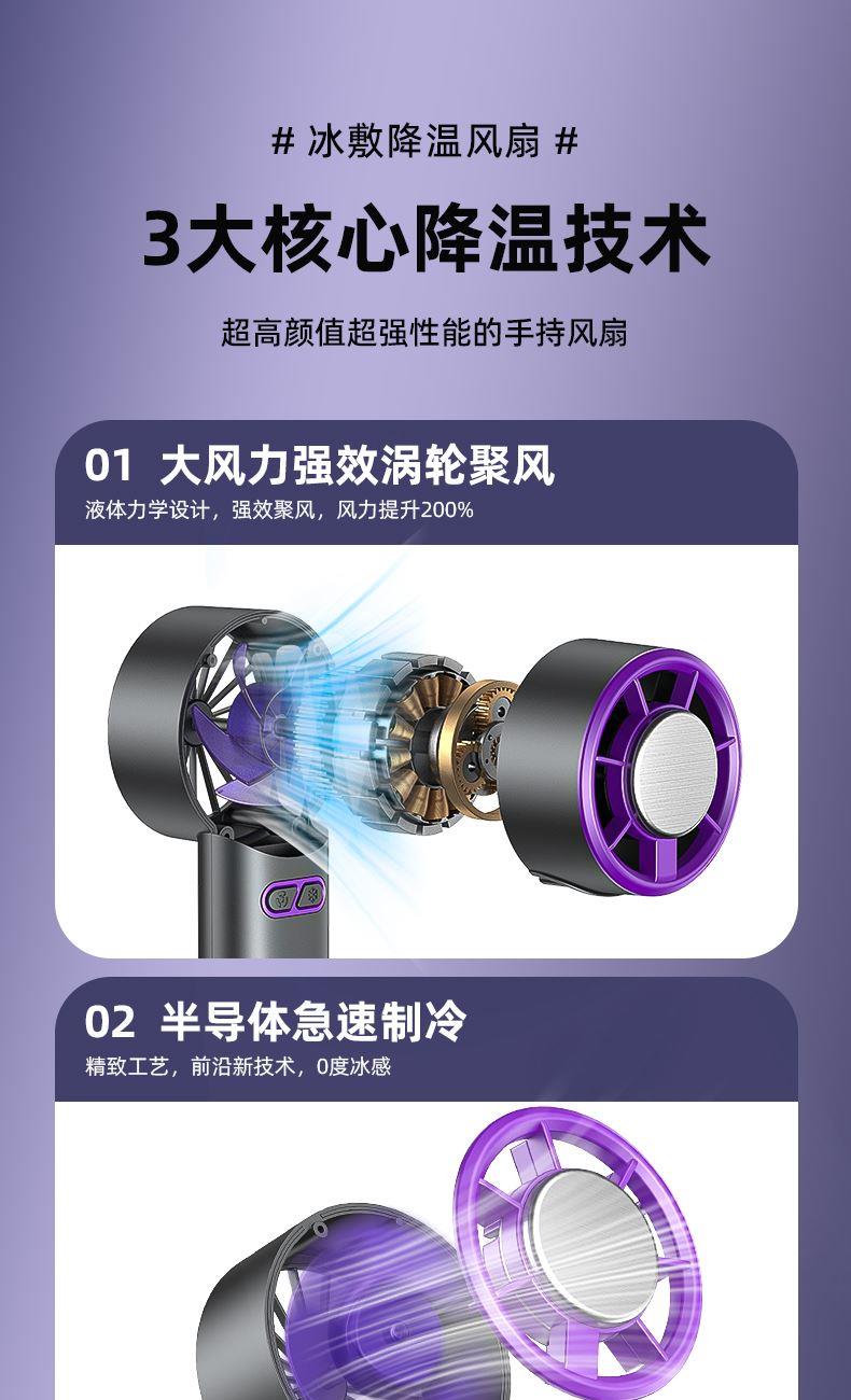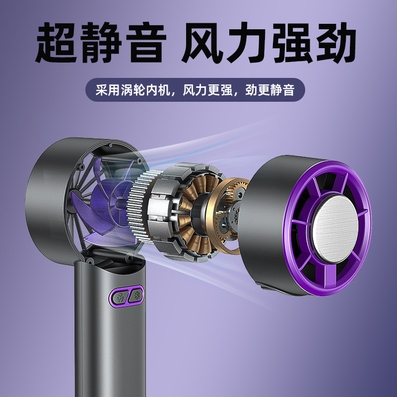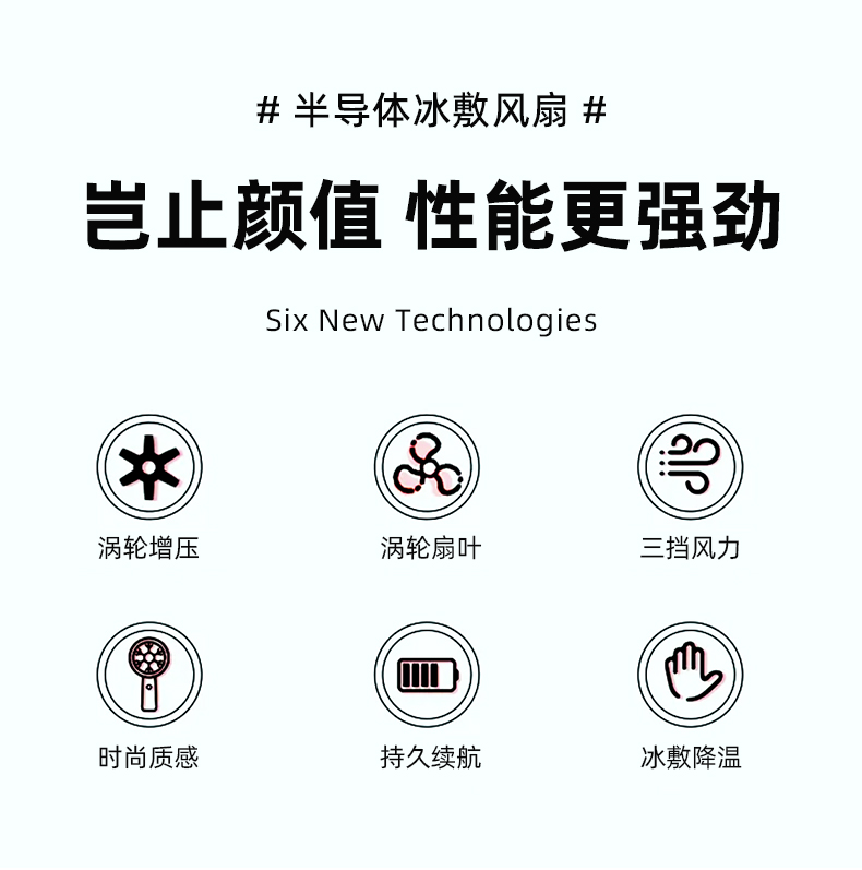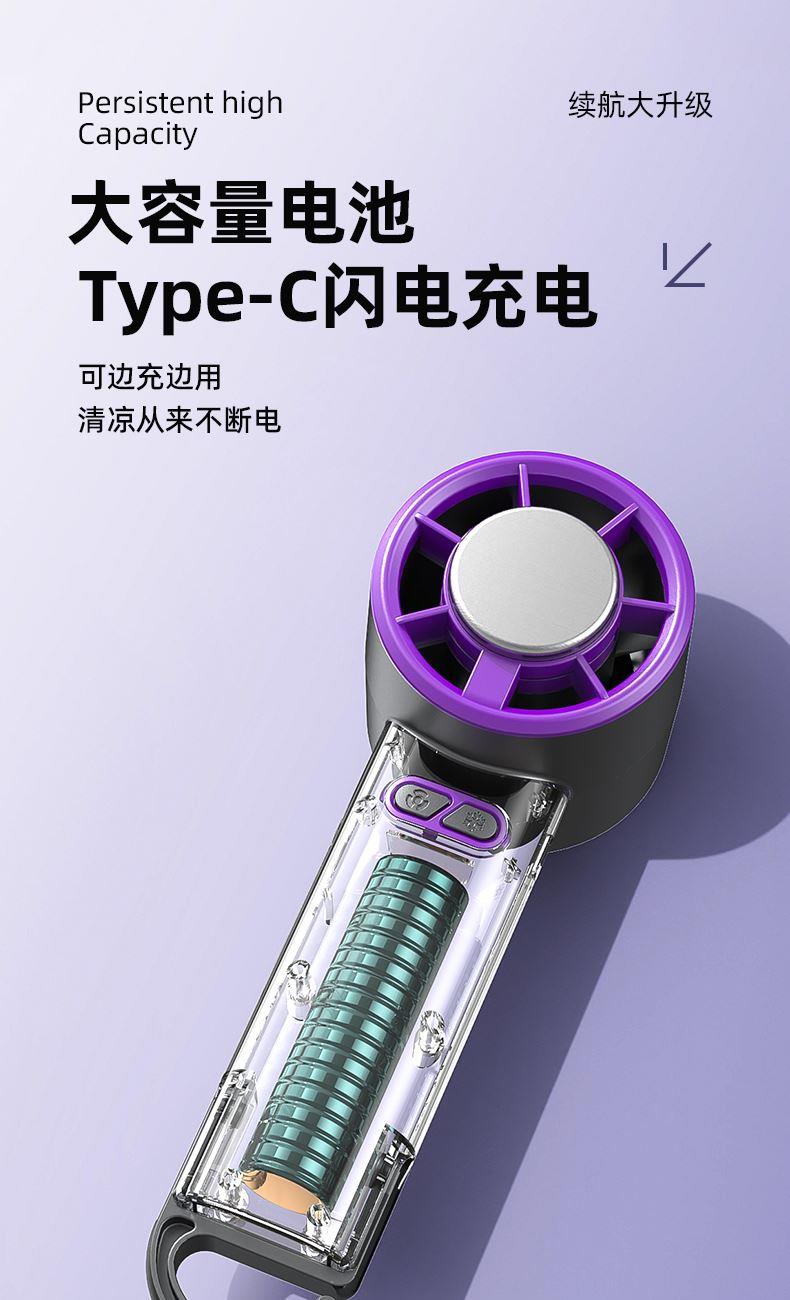 产品颜色:灰色 白色 产品尺寸:17.8*5.6*6cm 产品材质:ABS塑料+PC 输入电流:5V/1A 电池容量:1800mAh 功 率:4w 使用时间:3-5小时 产品重量:153.4g 特点: 开机速冷 续航持久 涡轮增压 三档风力 自带底座 享受不挑地方 大容量电池 Tpye-c闪电充电