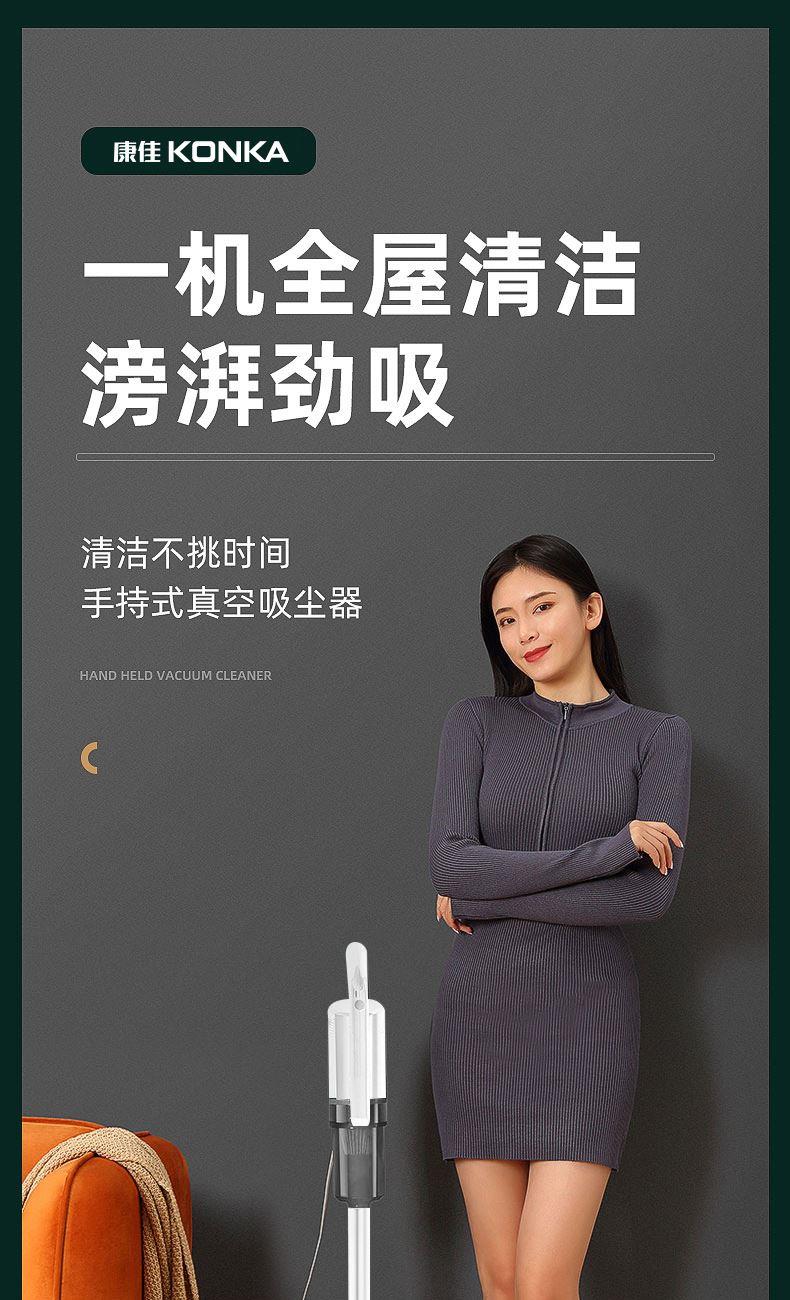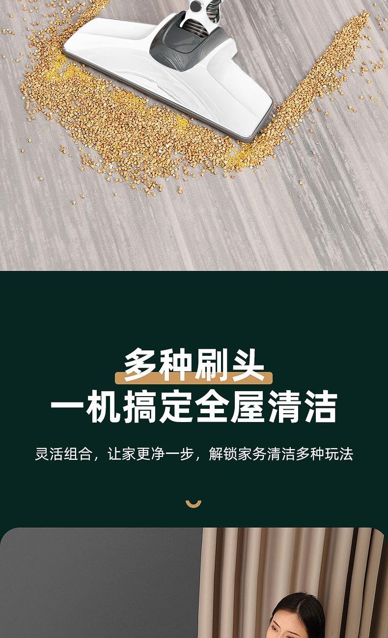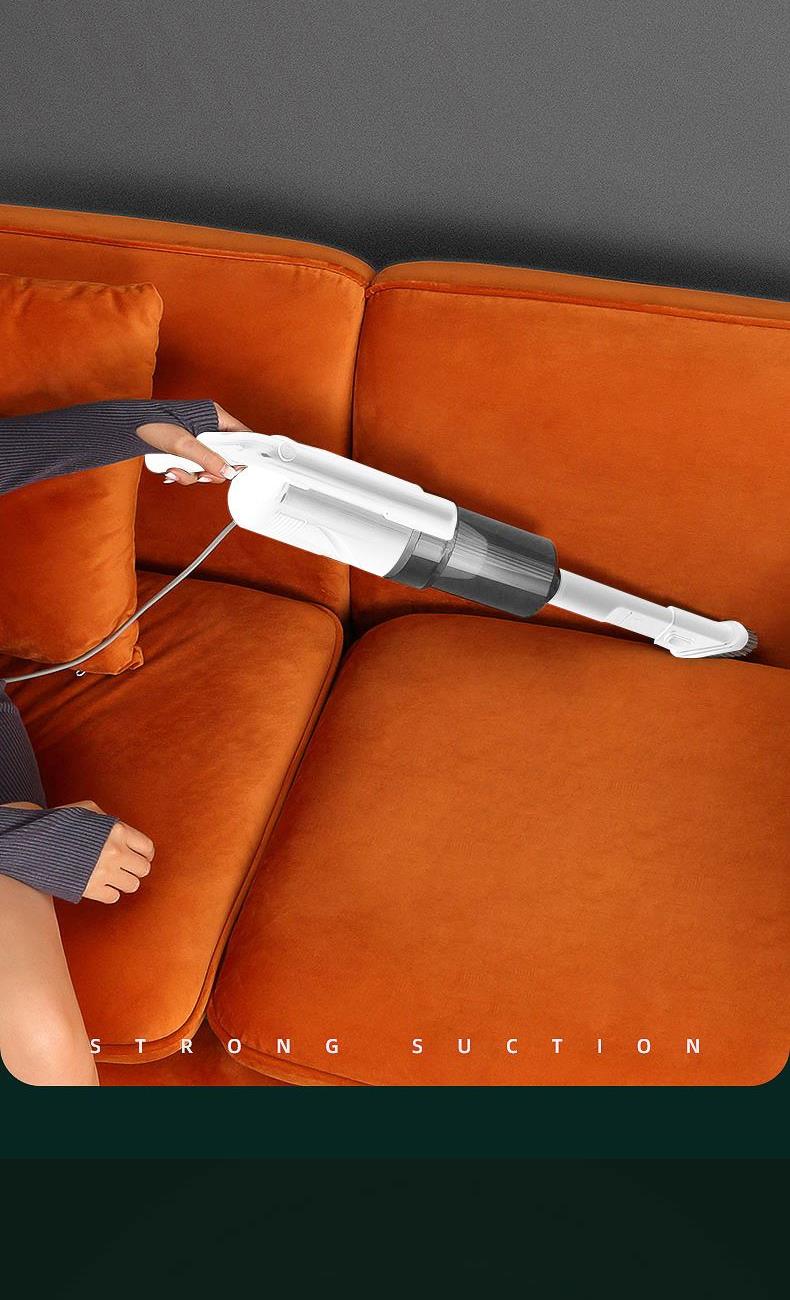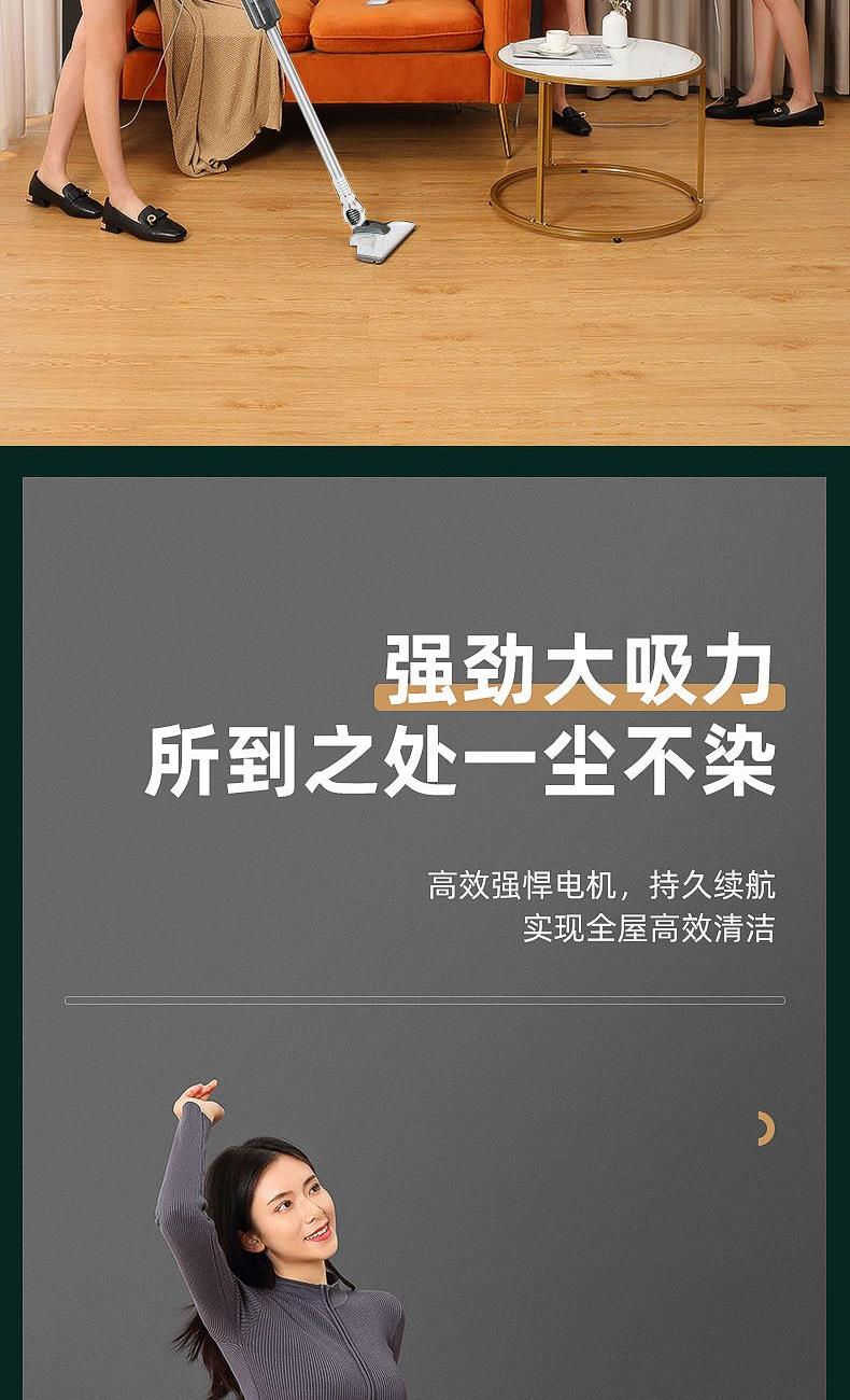 功率:400W 额定电压:220V 集尘容量1.0L 整机净重:约1.39KG 包装尺寸:495*180*205mm 15000PA强劲吸力 1.39kg轻便手持 海帕过滤无耗材 270°灵活刷头 机身小巧,轻松收纳 70dB低噪音