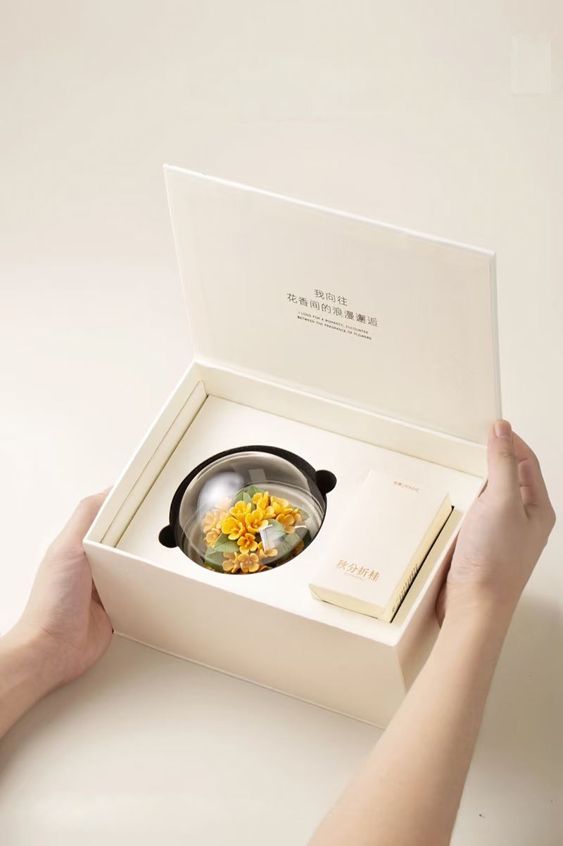 配置:非遗瓷花X1、皮垫X1、精油30ML、贺卡。 尺寸:瓷花底座直径100mm*高62mm, 皮垫直径118mm, 礼盒220X160X93mm。 款式可选:芙蓉花/茶花/绣球花/黄牡丹/粉牡丹/桂花