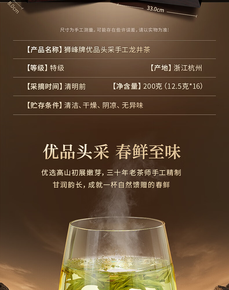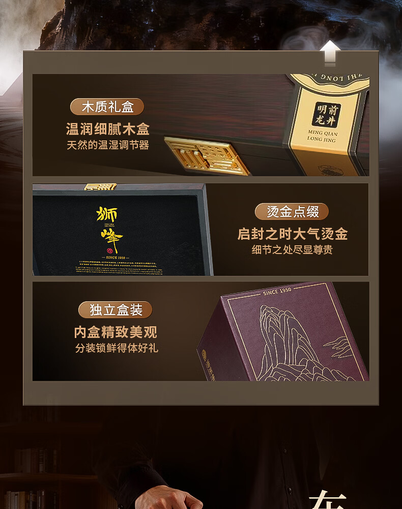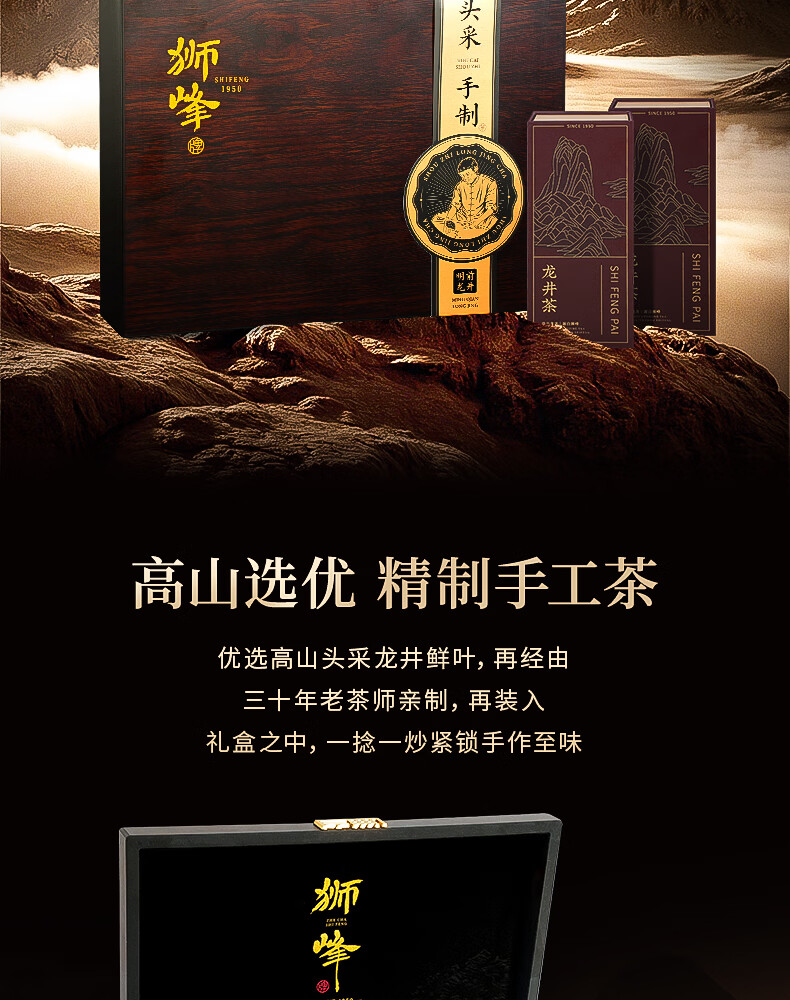 狮峰 商品编号:100150897051 保质期:12个月 采摘时间:明前 包装形式:礼盒装 采摘要求:一芽一叶 一芽两叶 茶叶等级:特级 包装清单:礼盒*1