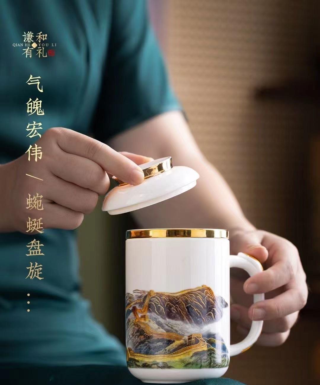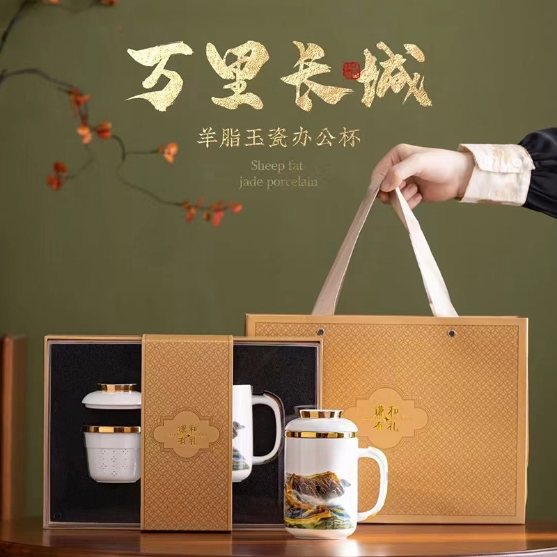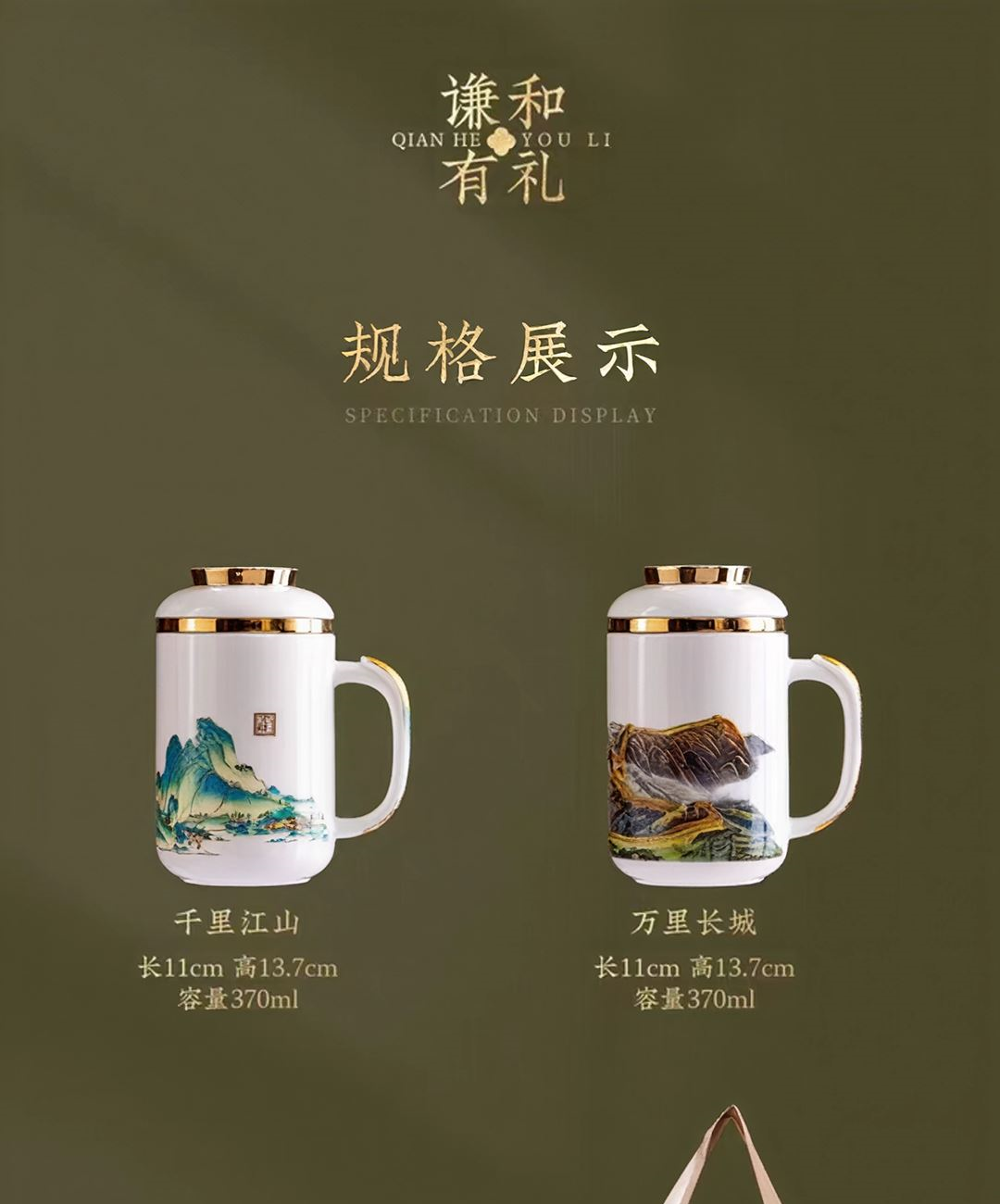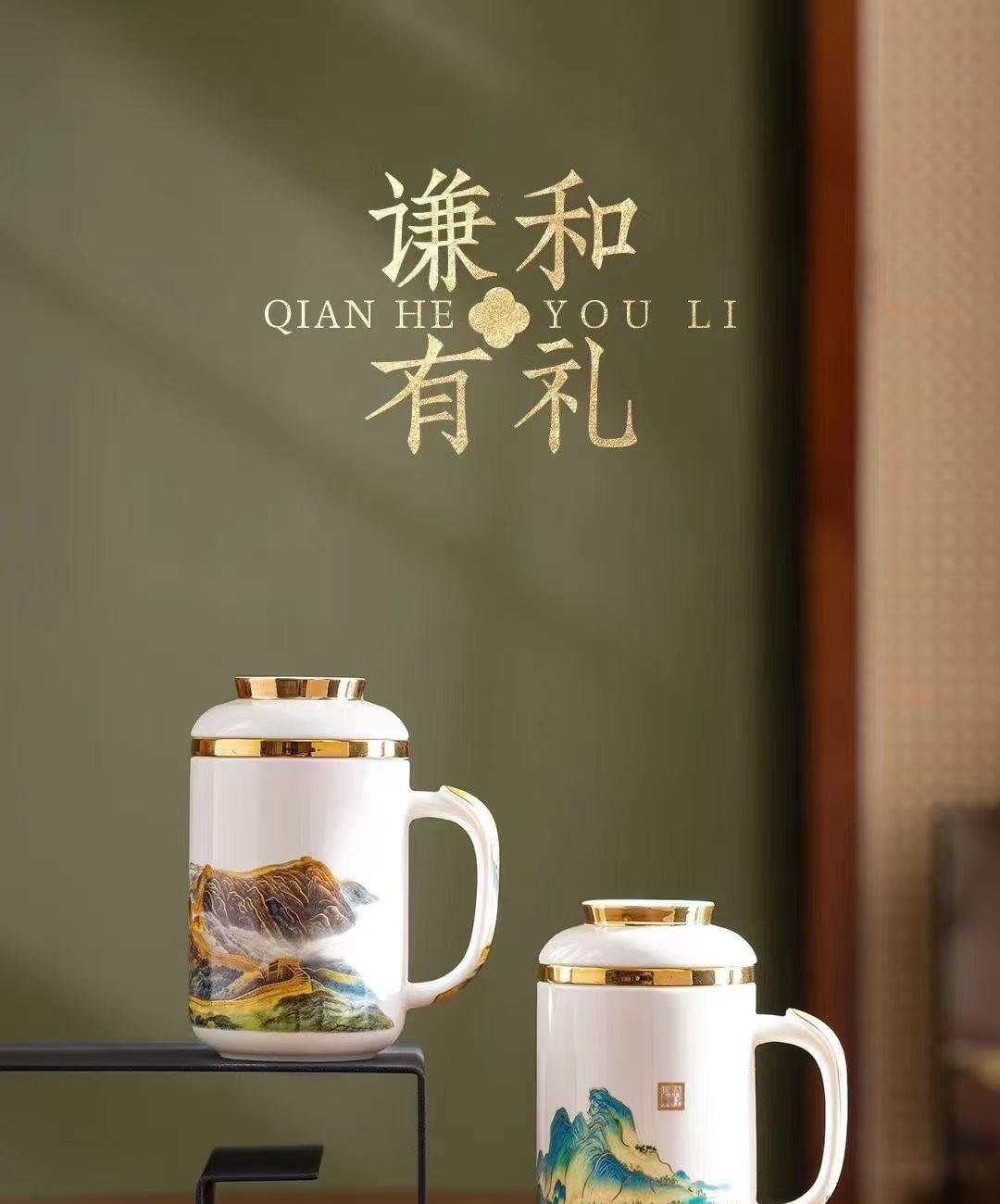 尾桥下窑千里江山/万里长城陶瓷礼品办公套组过滤杯会议送礼佳品