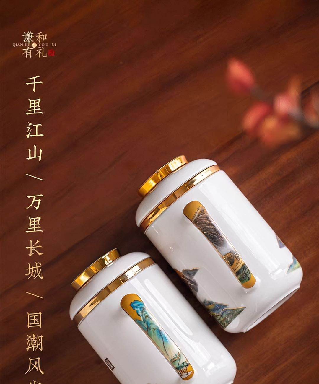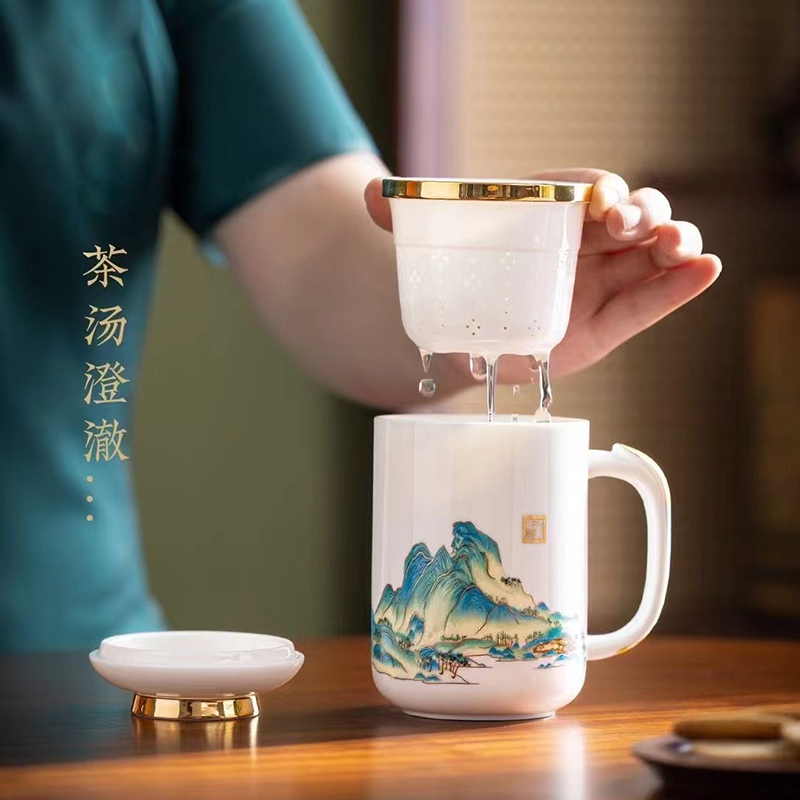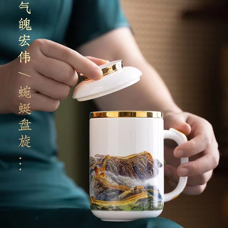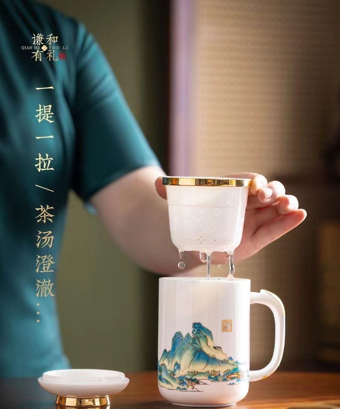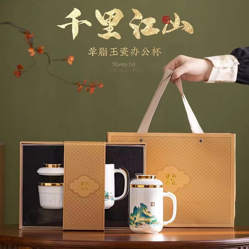 尾桥下窑千里江山/万里长城陶瓷礼品办公套组过滤杯会议送礼佳品