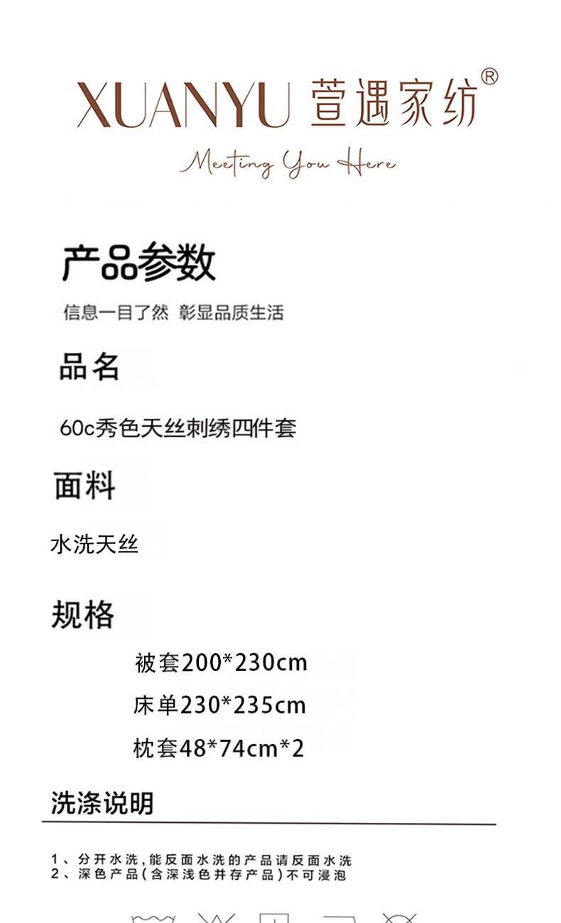 萱遇家纺60c秀色天丝刺绣四件套X-T8017
