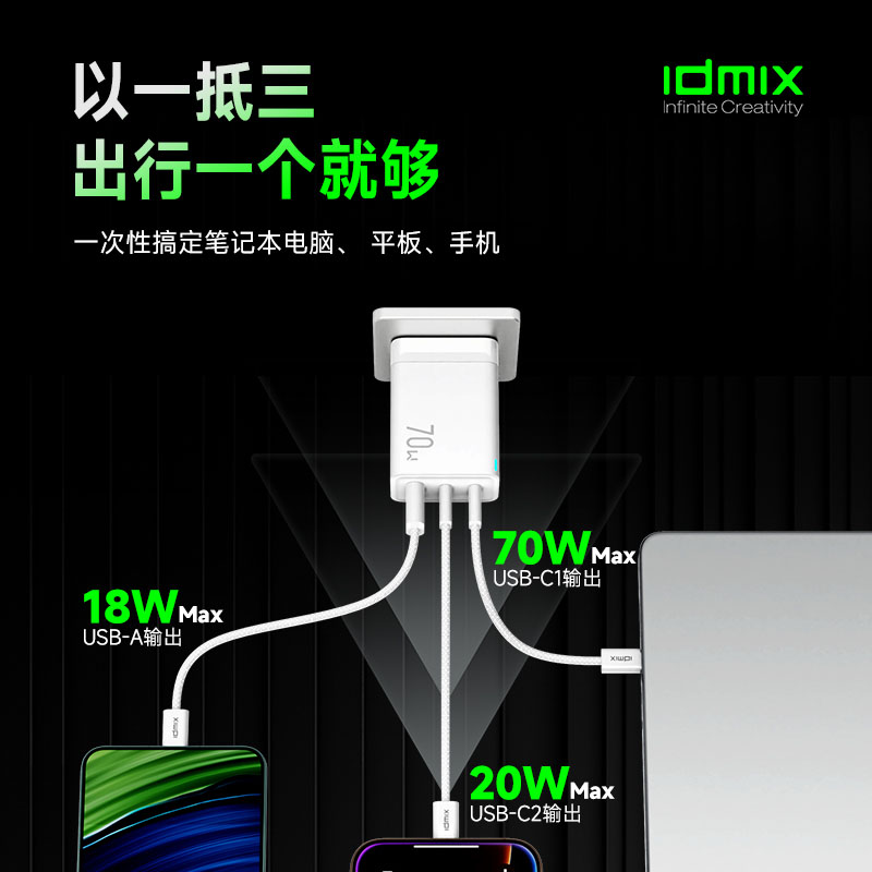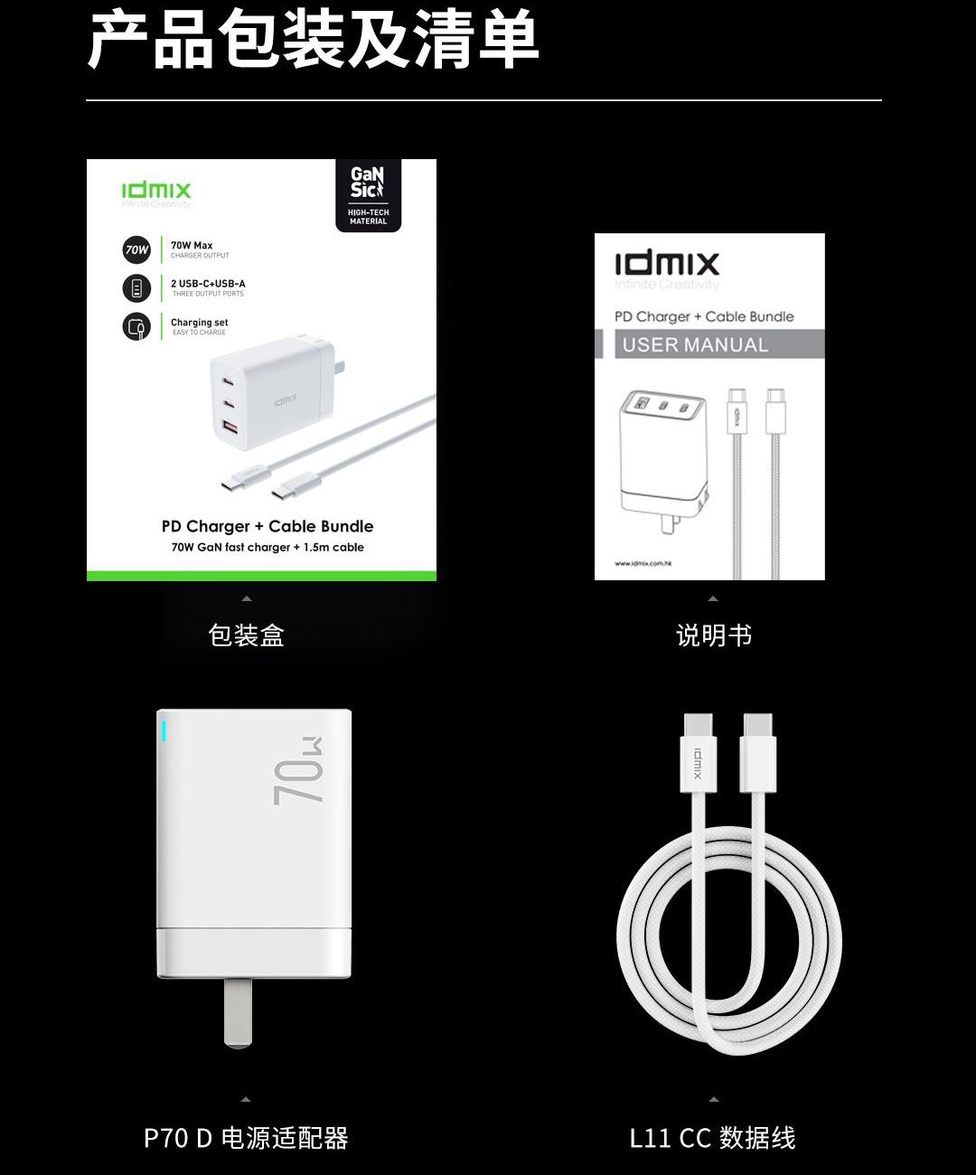 IDMIX70W氮化镓充电器套装P70D IDMIX70W氮化镓充电器套装P70D