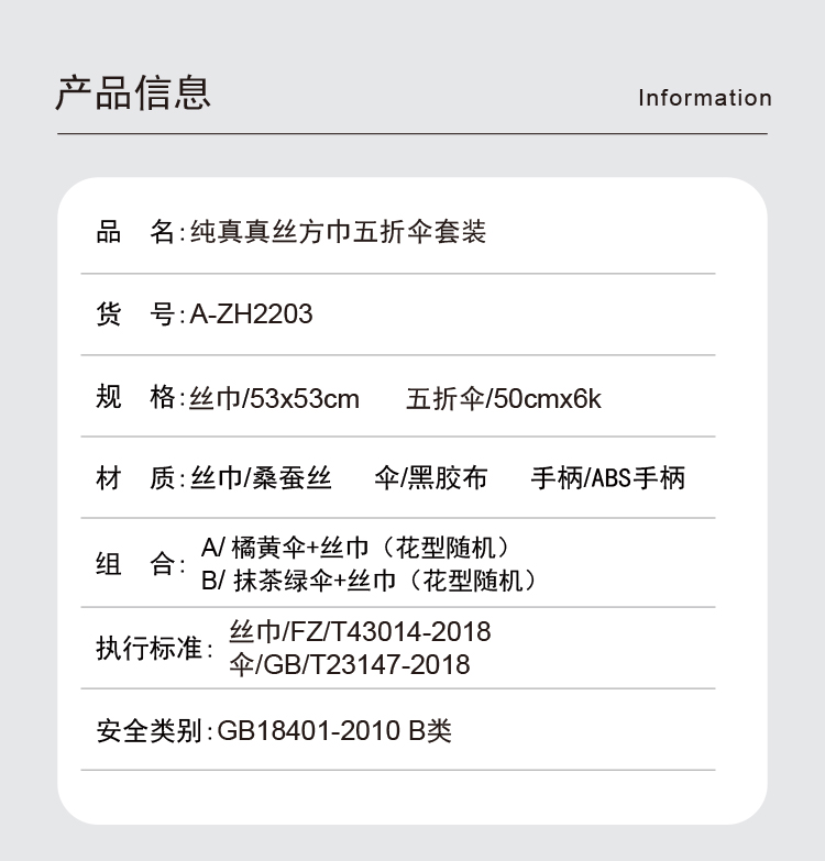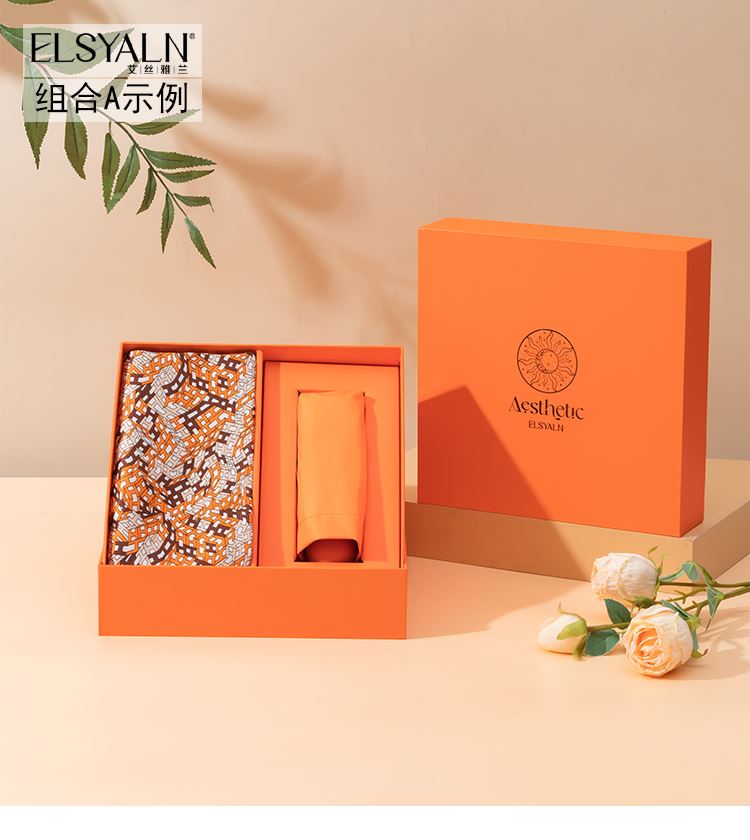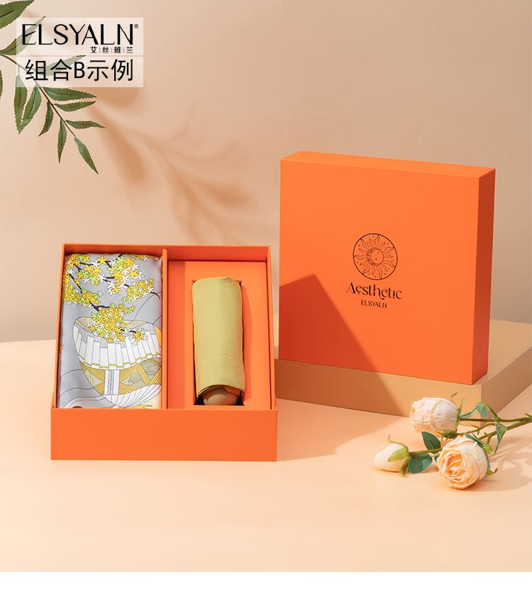 艾丝雅兰A-ZH2203纯真真丝方巾五折伞套装