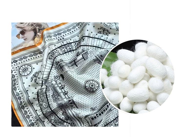 丝巾面料:桑蚕丝(12姆米) 伞面料:黑胶布 手柄:ABS手柄