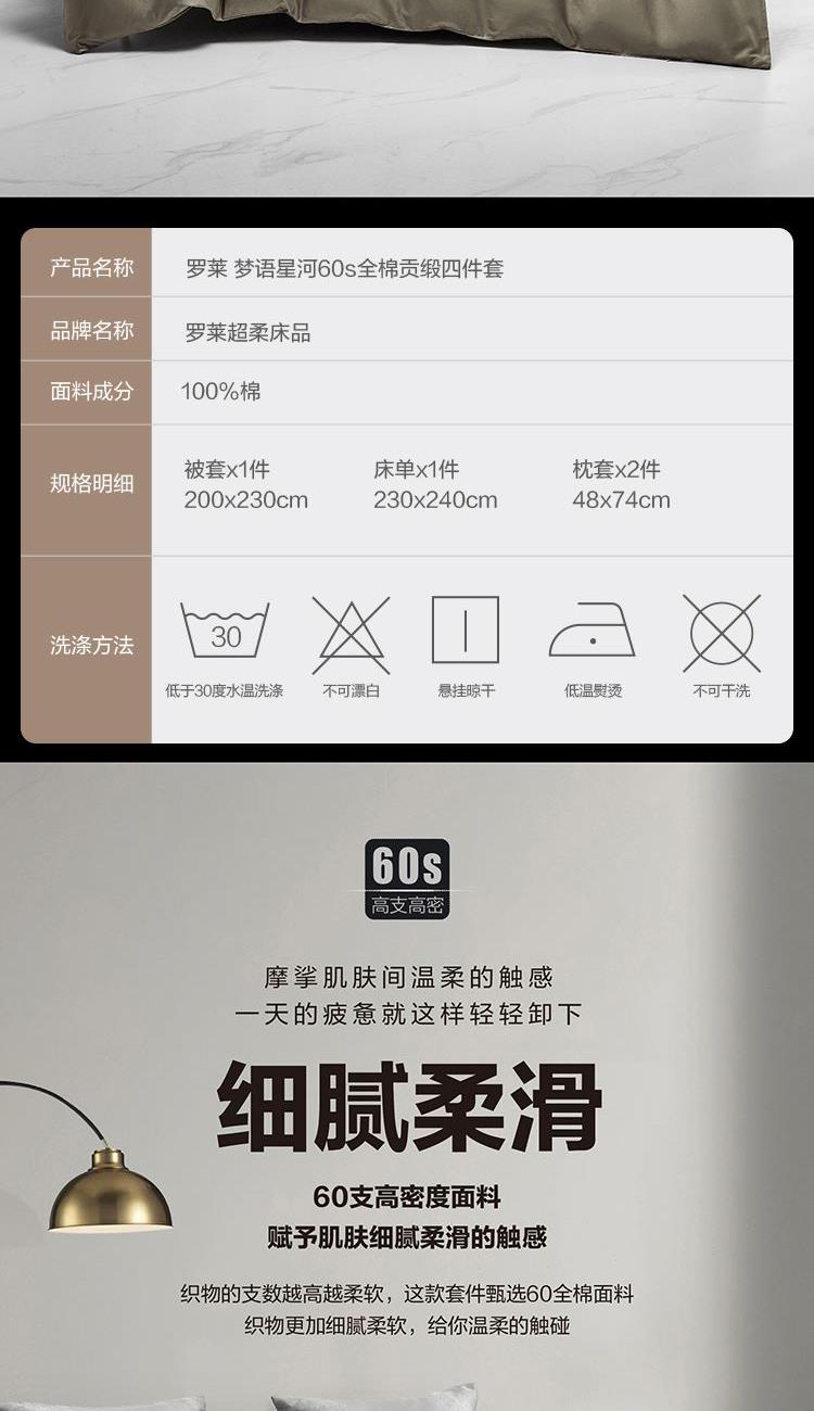 罗莱梦语星河60s全棉贡缎四件套200*230cm