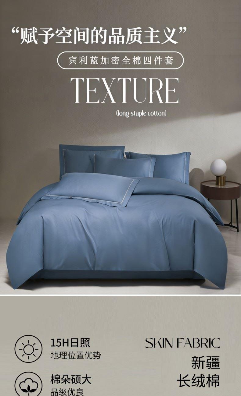 彼加曼BGM-T2629宾利蓝加密全棉四件套