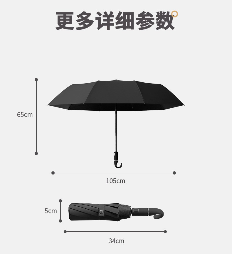 规格:23寸10骨 伞架:烤漆钢骨+纤维防风伞骨 面料:黑胶布 手柄:挂钩手柄 包装:同色布套+opp袋 颜色:深蓝,黑色,紫色,粉色,米白色,薄荷绿