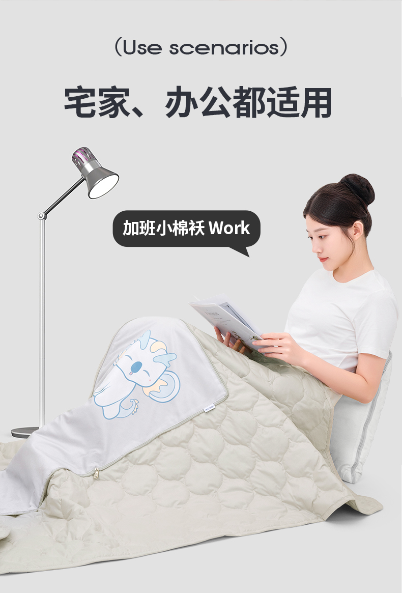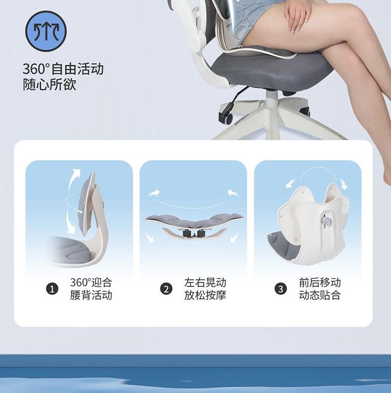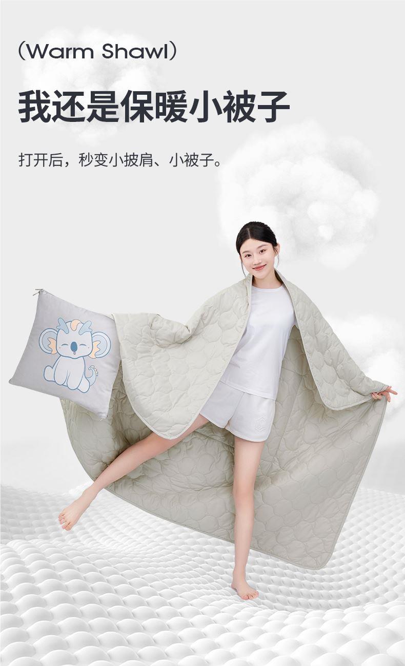 动感护腰椅:①科学分区,贴合身体曲线 ②多挡调节,满足多样化需求 ③动态追背,随肌而动 抱枕被:①双车精密绗缝工艺,300+个绗缝格牢牢固定被芯,不易跑棉不易变形 ; ②打开秒变小被子,轻盈保暖,秋冬抵御寒气,夏天可当空调被使用; ③宅家、办公都适用,秒变小披肩,空调房必备