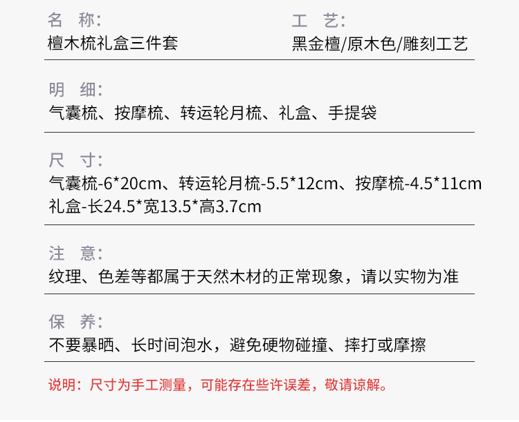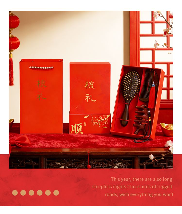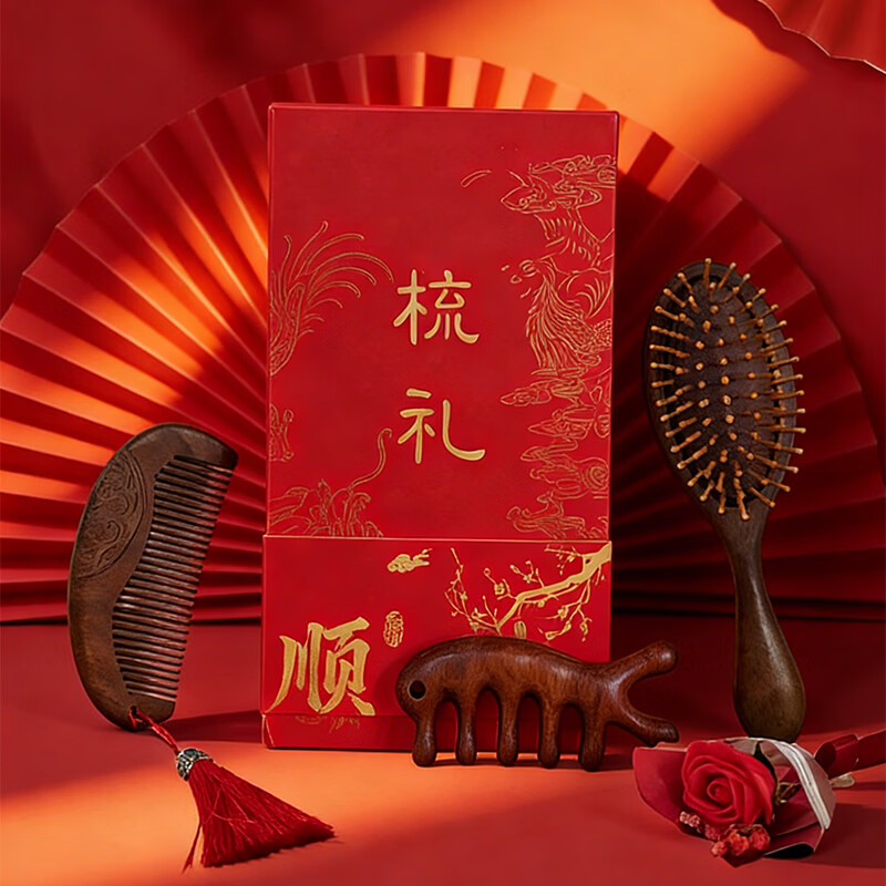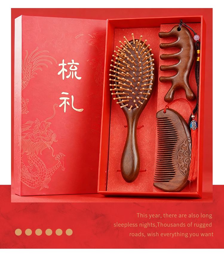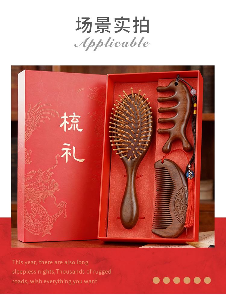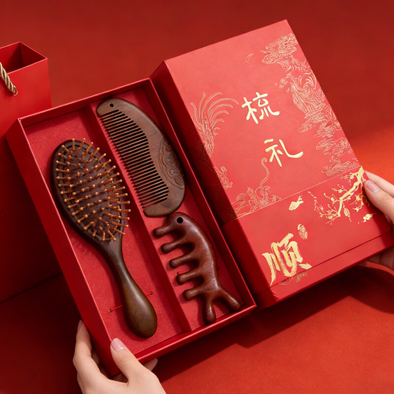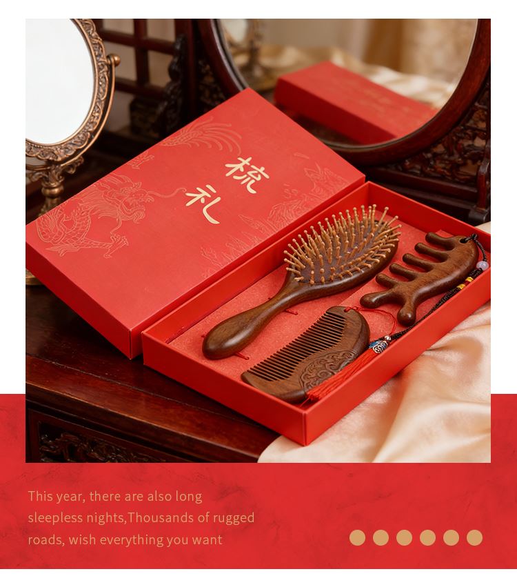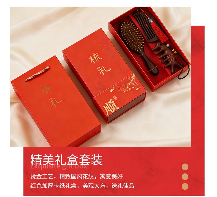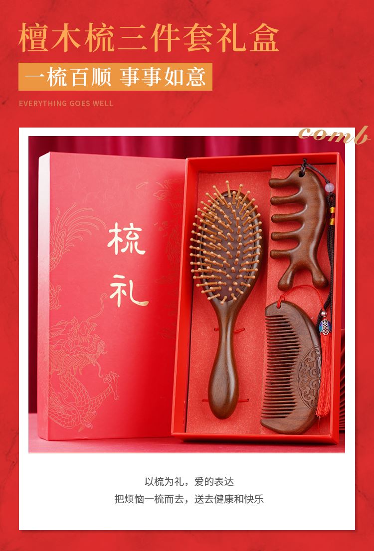 甜蜜点檀木梳子实用生日礼物女士实用伴手礼套装W5053