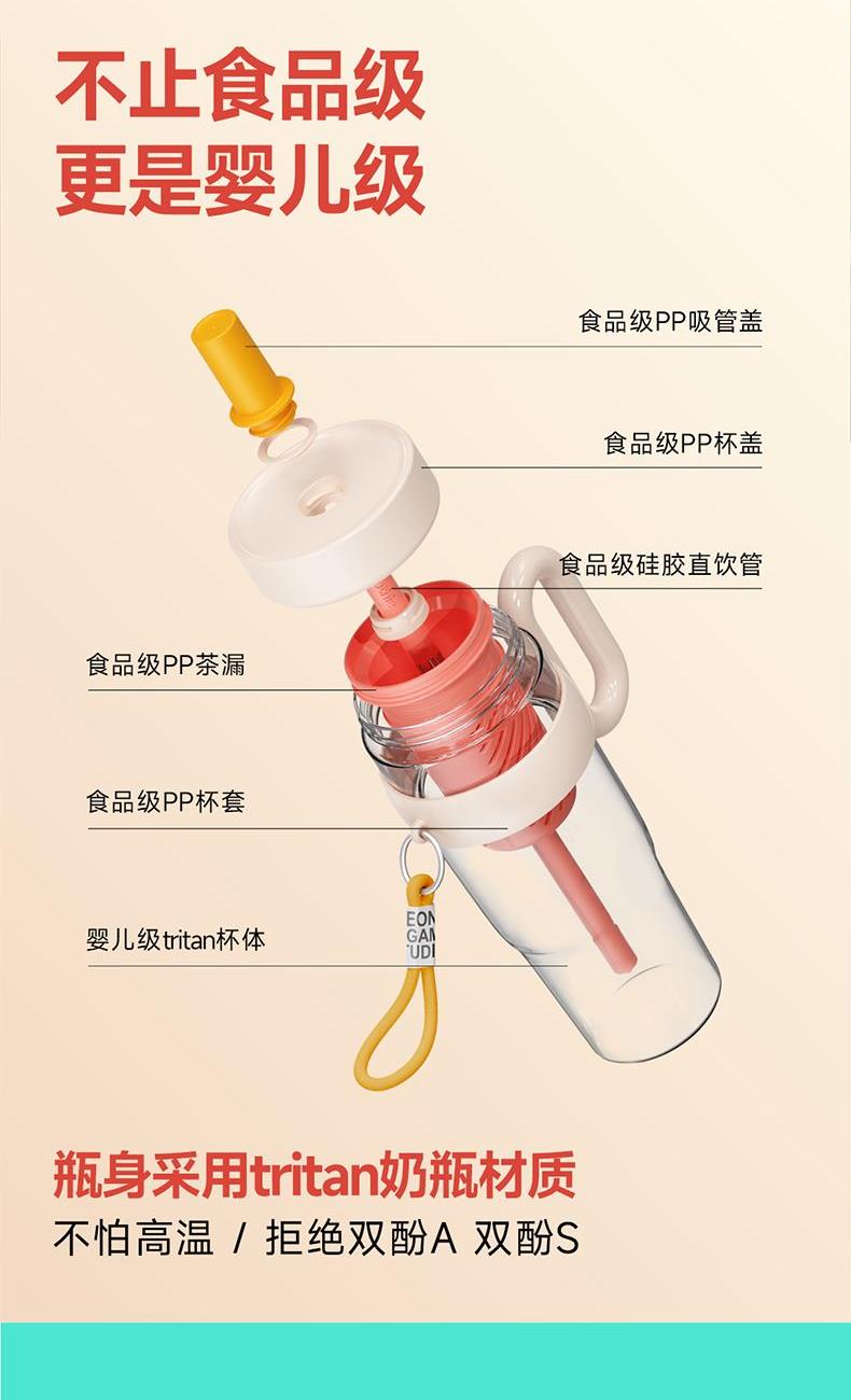 瓶身采用tritan奶瓶材质不怕高温/拒绝双酚A 双酚S。