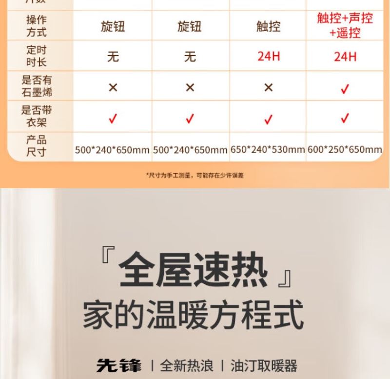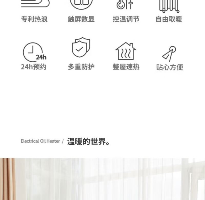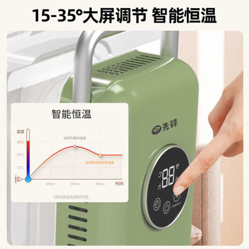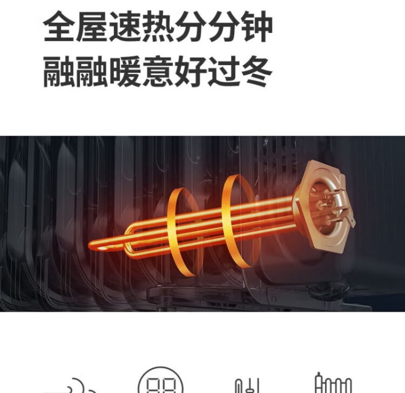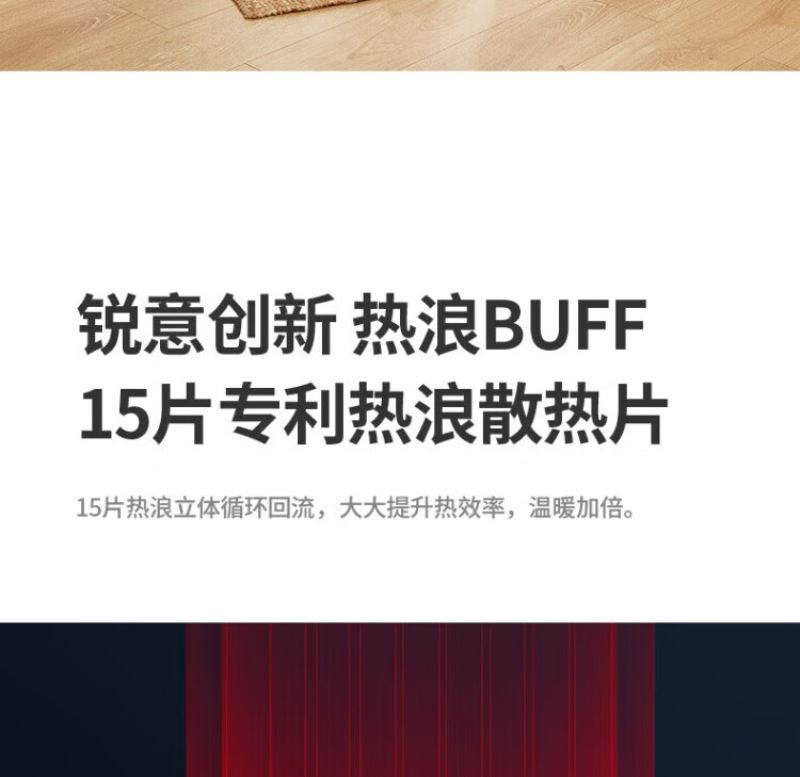 遥控器远程操作, 15片热浪发热片, 热效提升19.2%, 多重安全保护守护整个暖冬, 15-35℃C智能控温