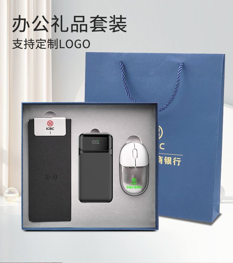 礼盒配置: 1、无线充鼠标垫(15W快充) 2、22.5W超级快充10000mAh自带线移动电源 3、双模无线蓝牙鼠标(透光LOGO) 4、包装盒尺寸:278x256x45mm 5、手提袋尺寸:271x307x55mm 6、重量:32kg