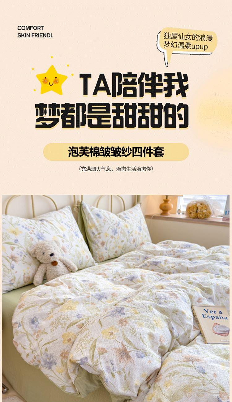 萱遇家纺泡芙棉皱皱纱四件套X-T8012