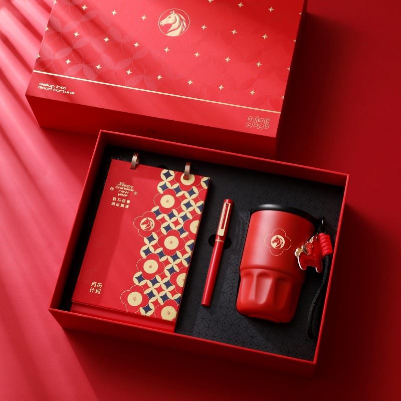 新年台历 204x130mm 铜板纸/印刷/烫金 新年红包 100x180x15mm(6个) 珠光纸 签字笔 140*11mm(0.7mm) 金属/进口油墨 保温杯 85x153mm(400ml) 内胆316不锈钢