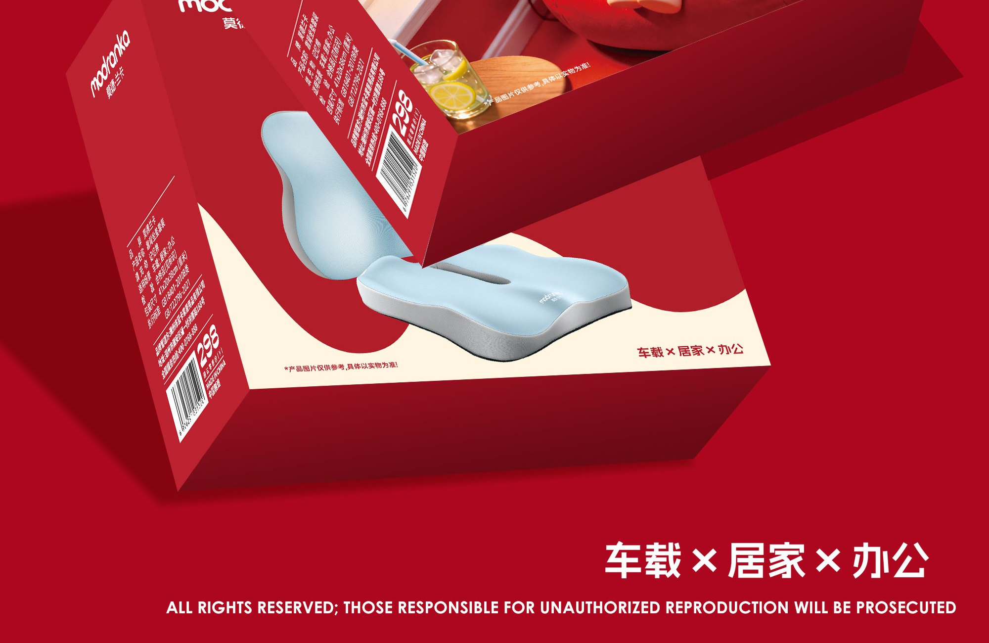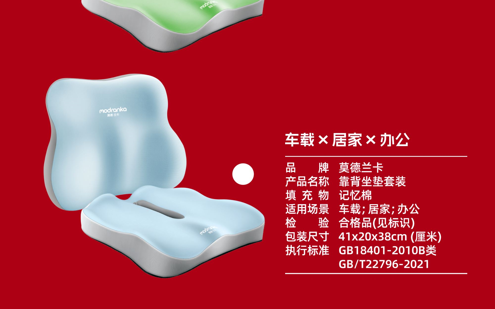 套装内物:1个坐垫、1个腰靠枕 填充物:记忆棉 产品尺寸:腰靠枕 40x9.5x31cm 坐垫38x6.5x33cm 彩盒尺寸:41*20*38cm 每件:10套 外箱尺寸:103.5*42.5*78cm(厘米)