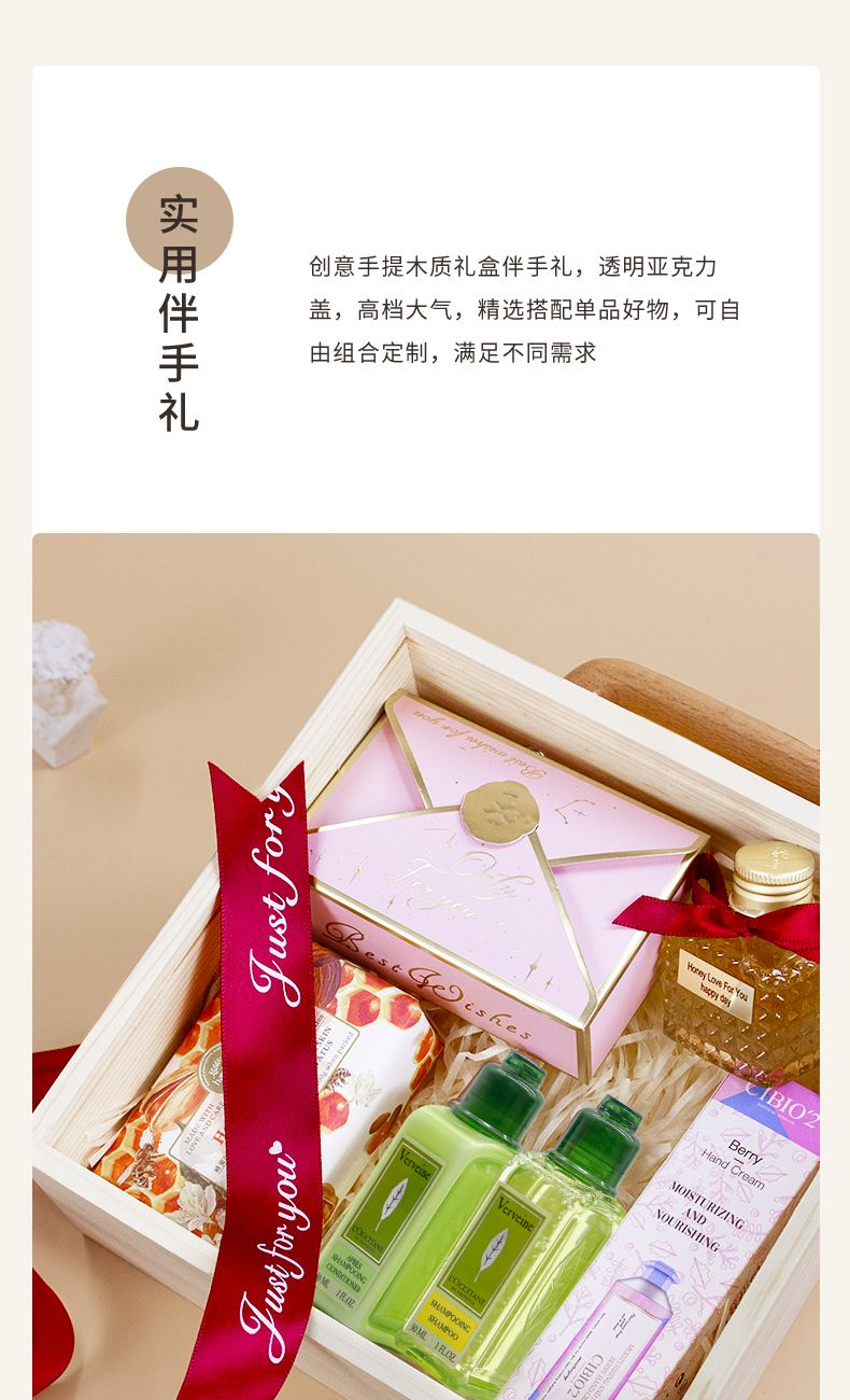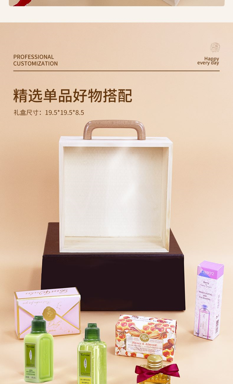 礼盒尺寸:19.5*19.5*8.5cm 糖果盒(内含糖果) 小罐蜂蜜35g 韩宝莉香皂200g 欧舒丹护发素30ml 欧舒丹洗发水30ml
