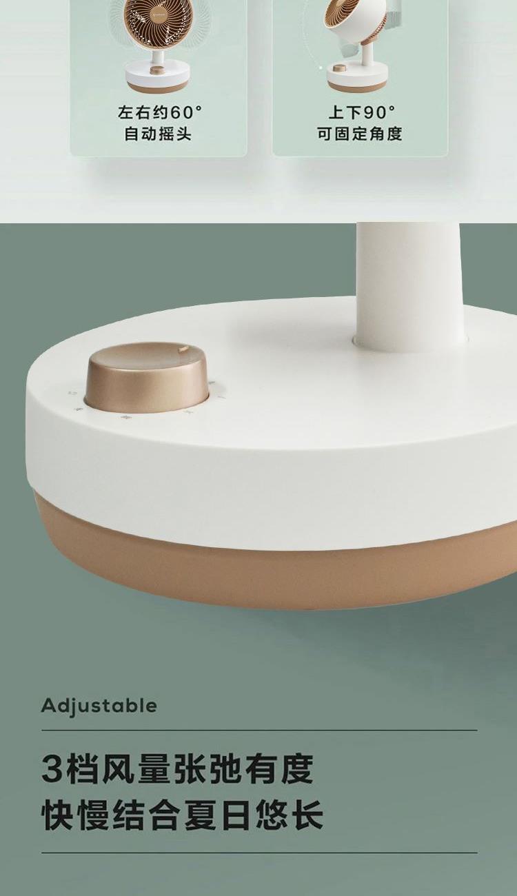 2、多角度3D立体送风,左右60°摇头,上下90°可固定角度