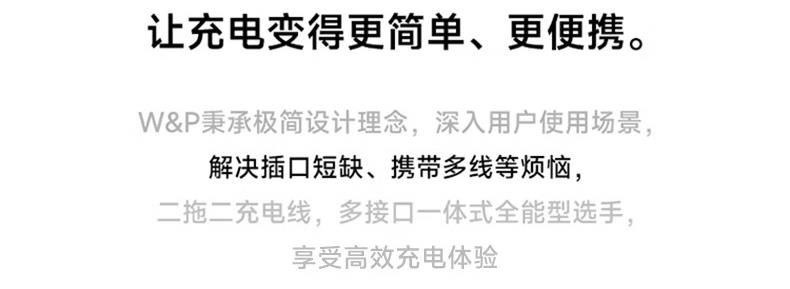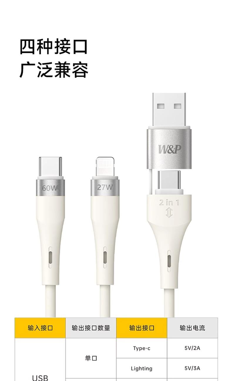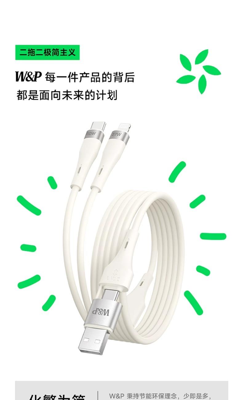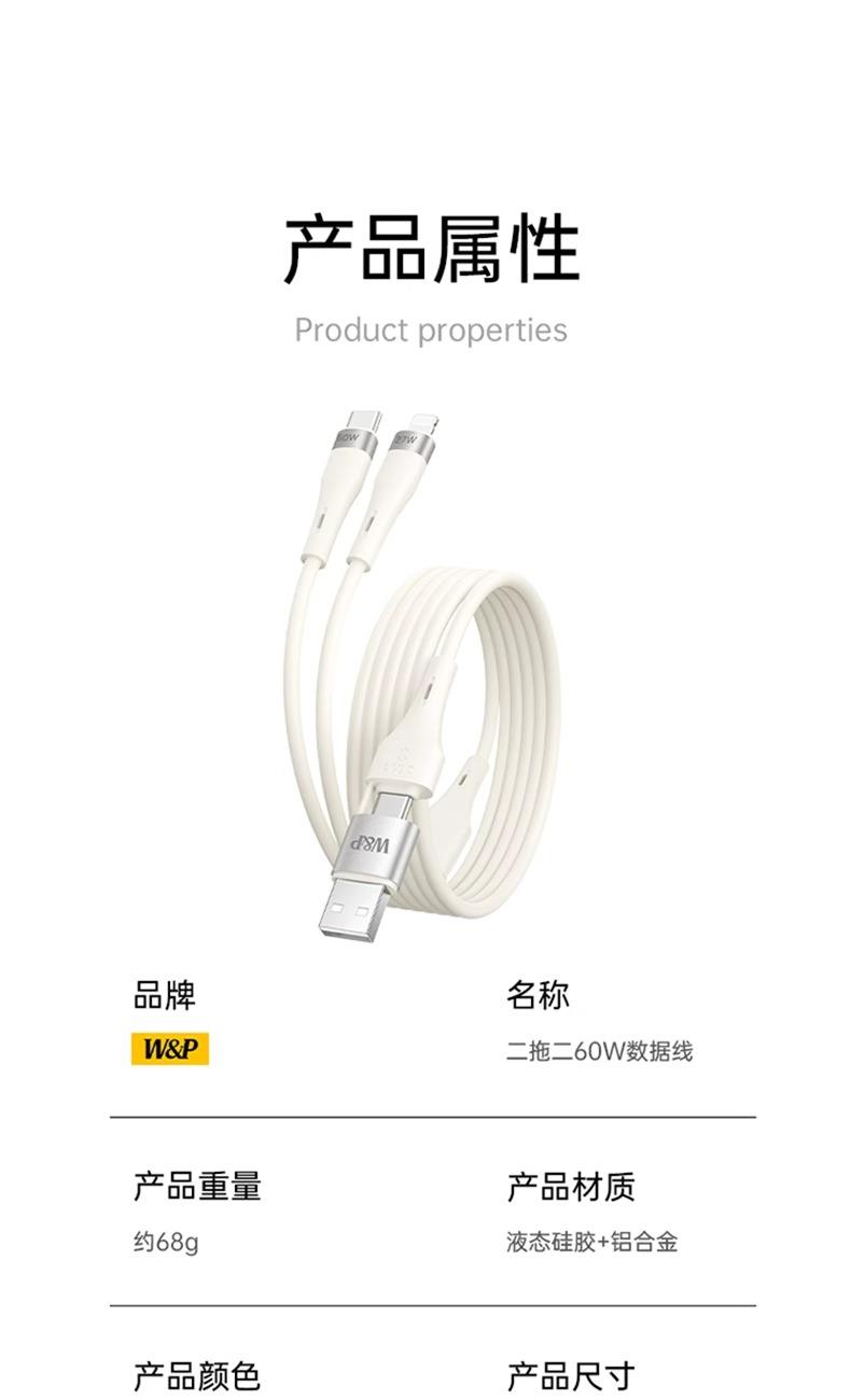 W&P线材类二拖二60W硅胶数据线1.5米BXGT01