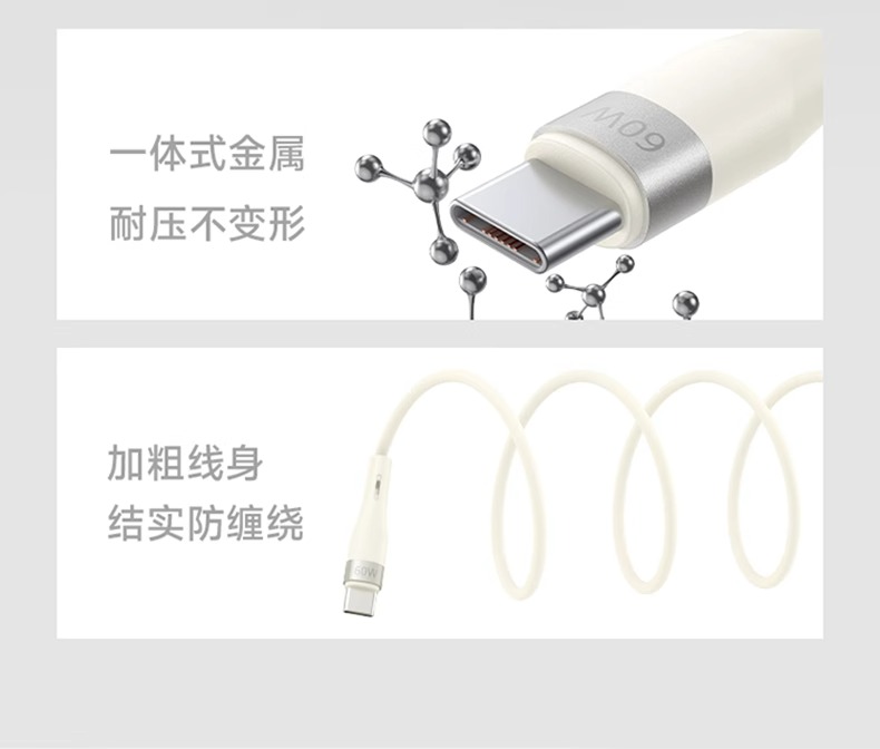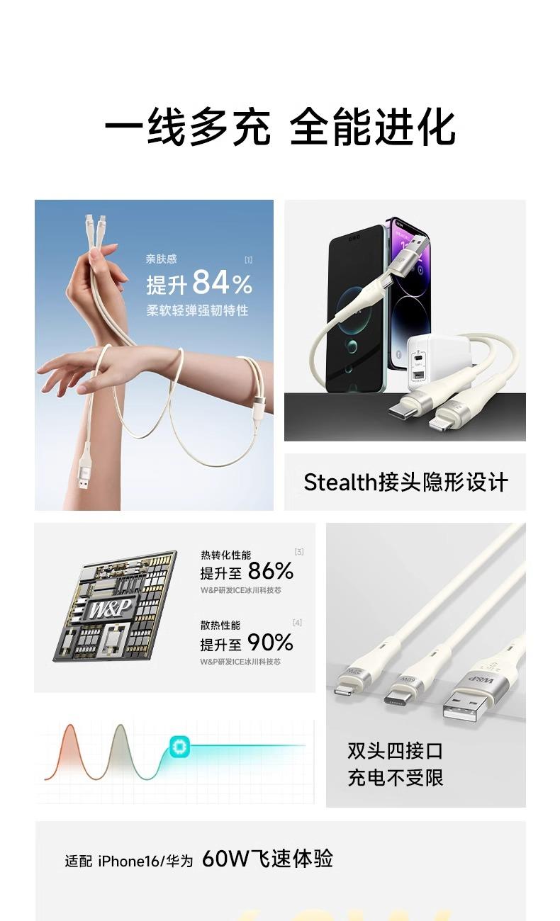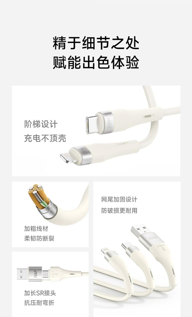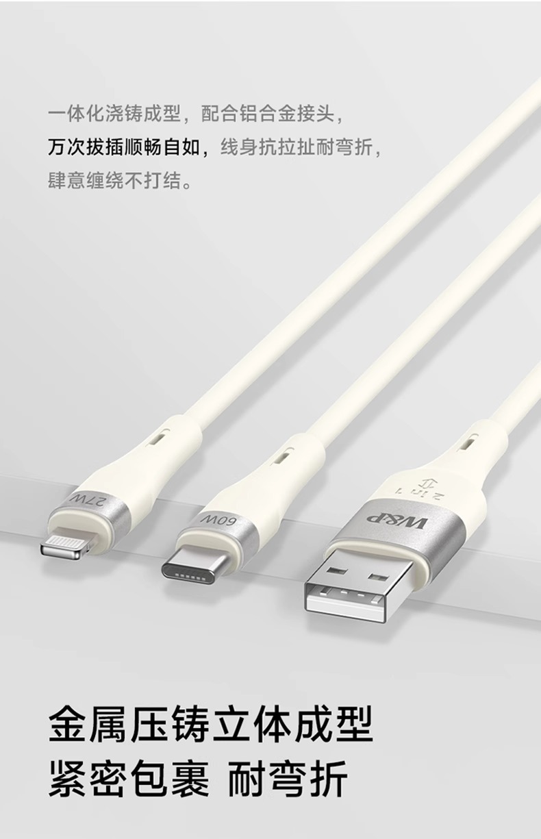 W&P线材类二拖二60W硅胶数据线1.5米BXGT01