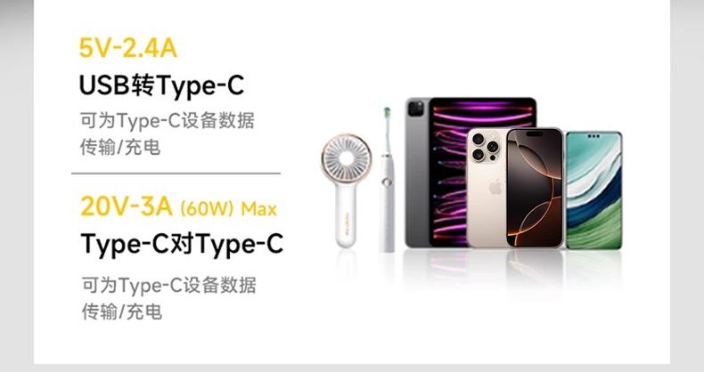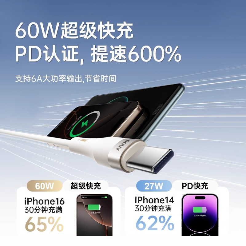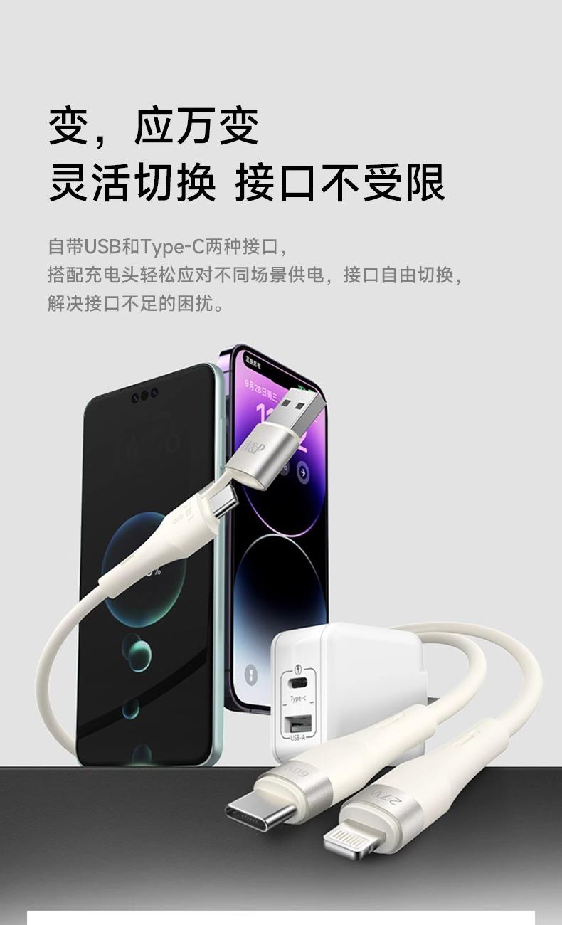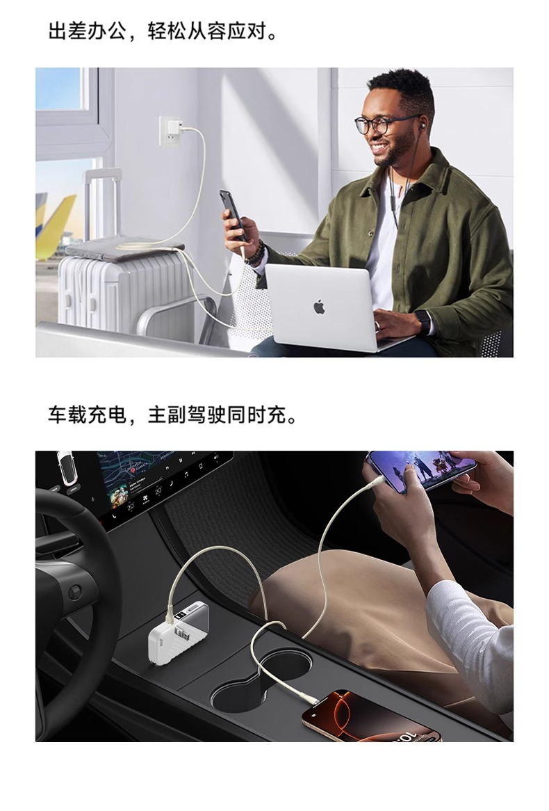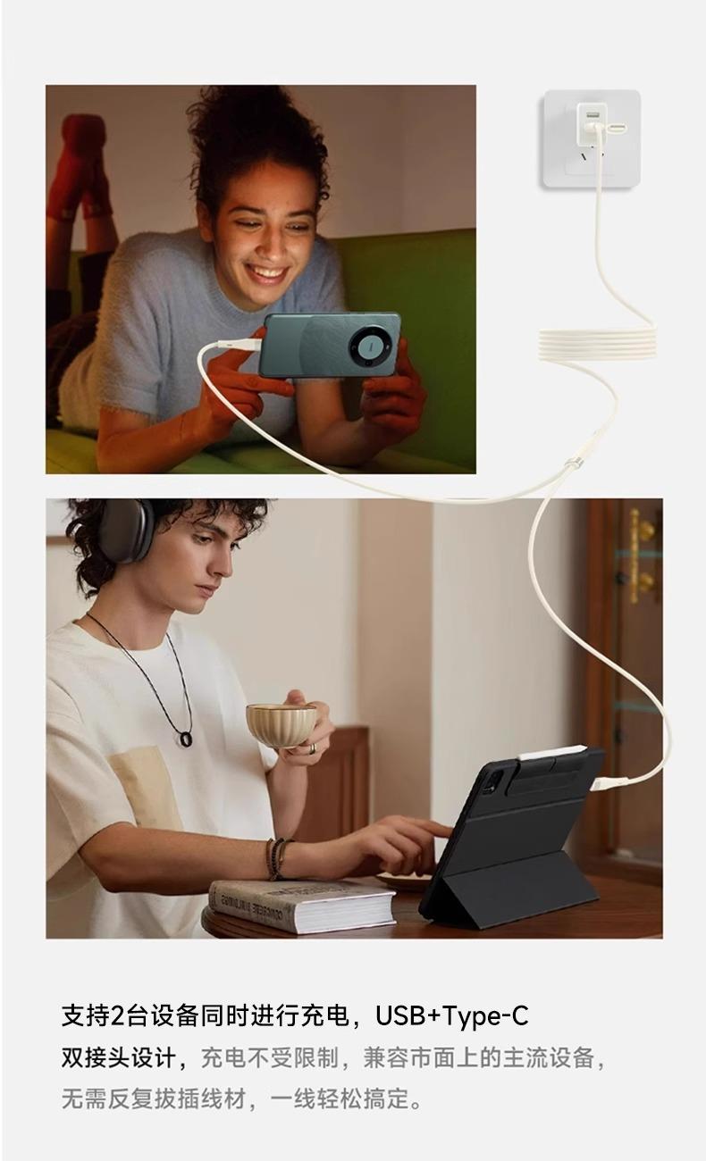 二拖二双口快充 苹果口27W TYPE-C口60W