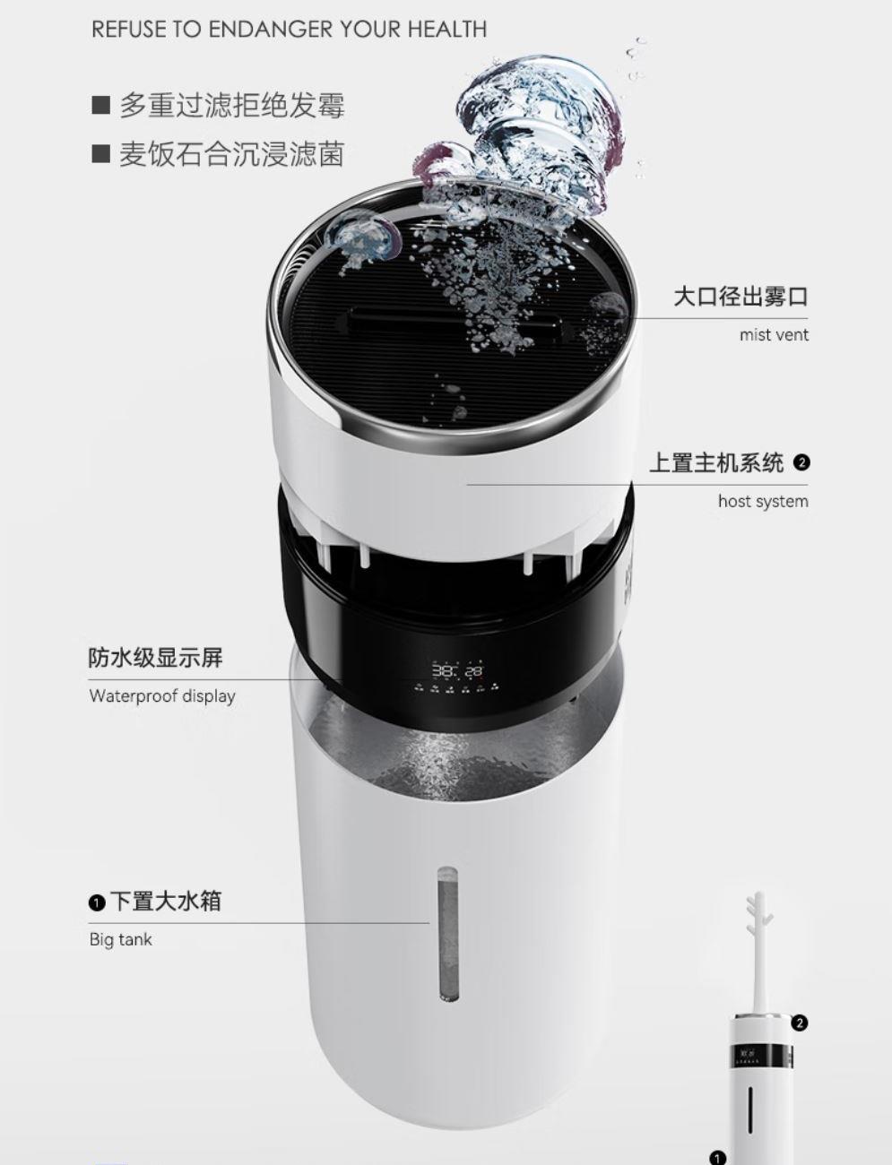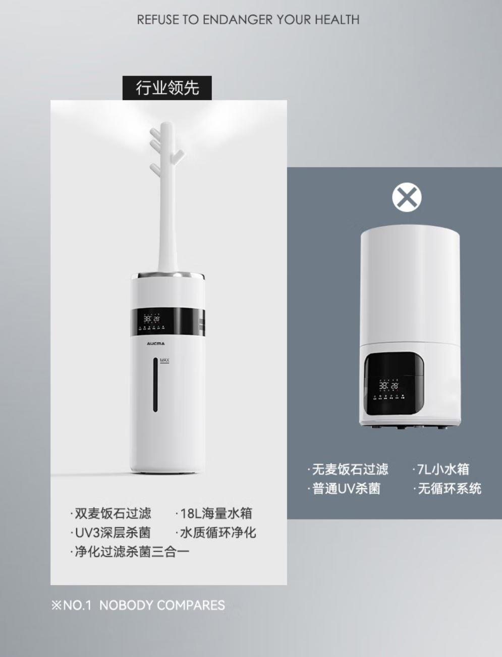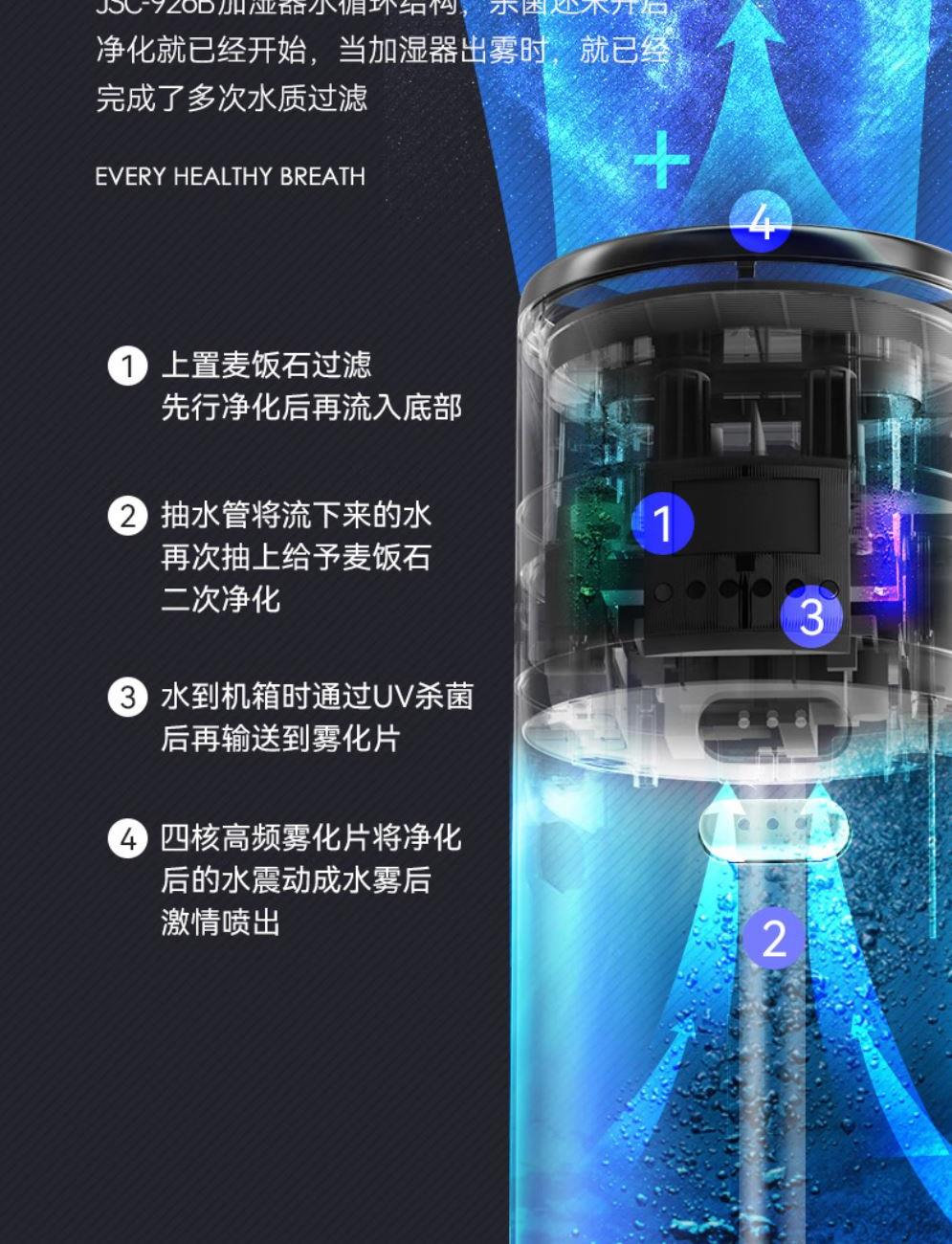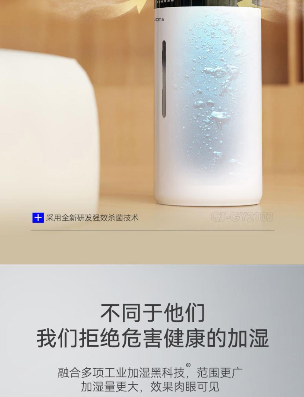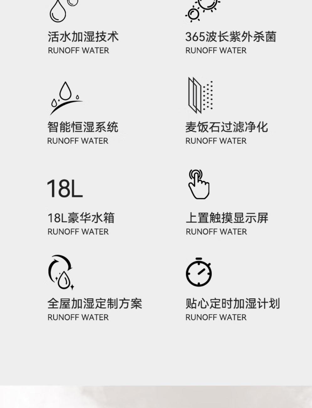 额定功率:110w 水箱容量:18L 产品净重:2.5kg 产品毛重:3.5kg 产品尺寸:240*240*1200mm 四核巨雾,一键开启全屋澎湃加湿 融合多项工业加湿黑科技,加适量更大,效果肉眼可见 1200ml/h大雾量别墅级加湿,轻松面对各种苛刻环境 内置波长灯,从源头真正做到消灭细菌 内置高精度湿度传感器,一键打造智能恒湿 18L海容量,足够加湿200平大空间一整天的要求