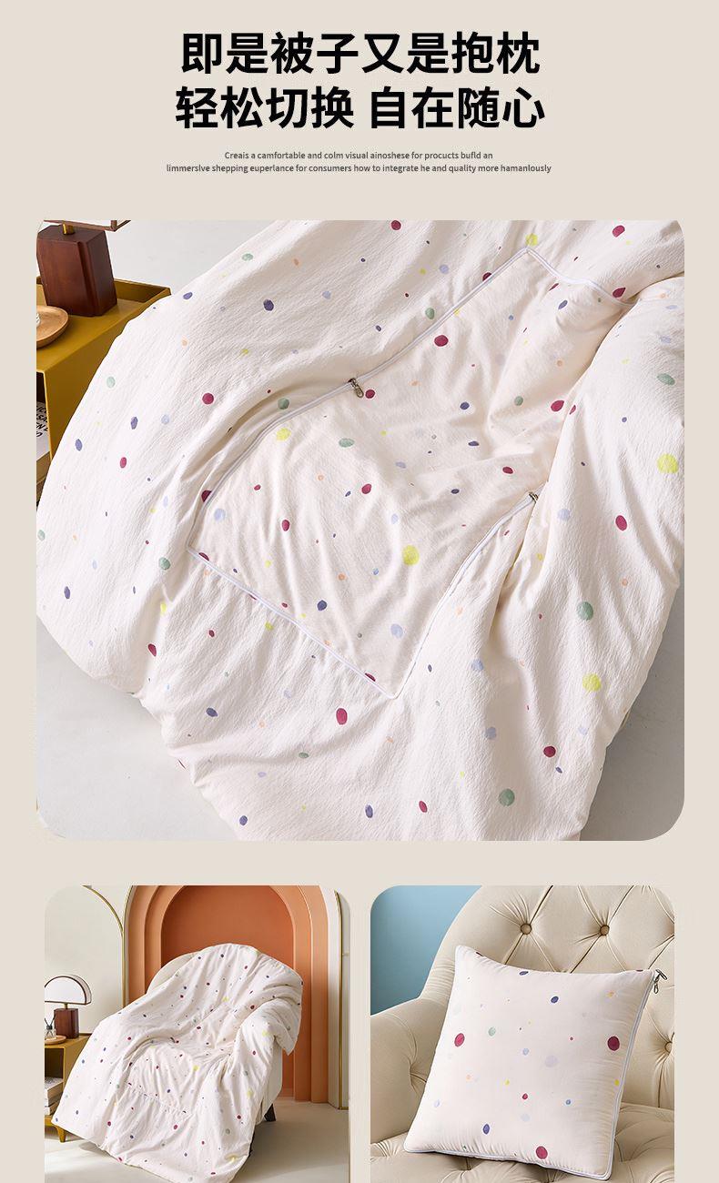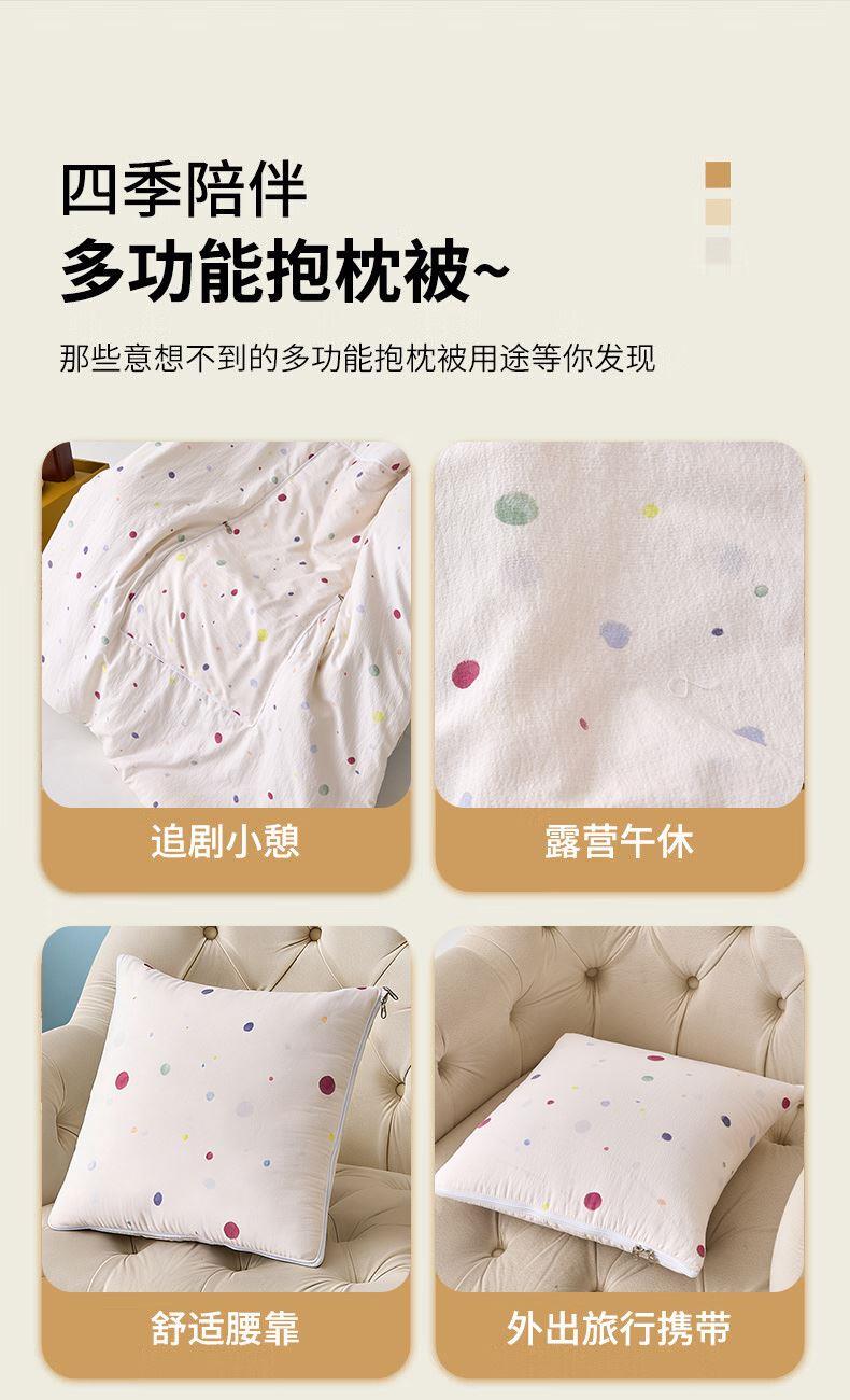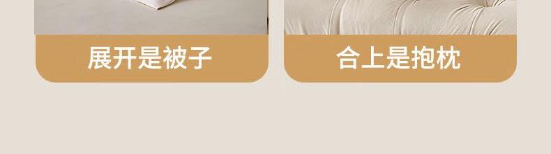 规格:40*40cm±5cm 展开:105*150cm±5cm 面料:泡芙棉 填充: 羽丝棉 执行标准:GB/T22796-2021 安全类别:GB18401-2010 B类 1.采用短毛绒面料,颜色鲜艳、丰富、美观大方,手感光滑流畅,洗涤后不收缩。 2.填充环保羽丝纤维,轻薄透气,简约而不简单,适合贴身覆盖, 3.抱枕方便收纳,可作为家居抱枕。