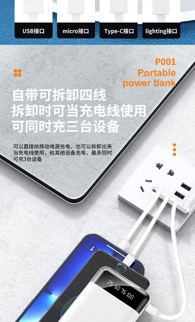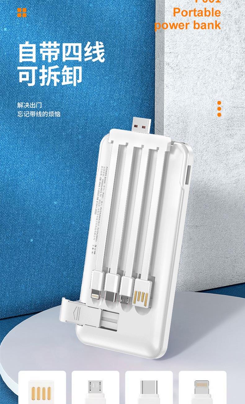 自带四线:USB充电线、Lightning线、Type-C线、Micro线