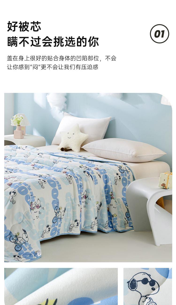 商品货号:SBX21 商品面料:聚酯纤维 填充材质:聚酯纤维 整张纤维填充 亲肤不压身 蓬松透气 轻柔舒适 吸湿不闷热 严密针脚 不易起坨 精致包边 活性印染 史努比卡通图案印花 鲜艳花色 点缀家居 高颜值床品 让您爱不释手 新一代环保工艺 给生活多一点安全感 权威检测认证 贴肤使用 健康安心